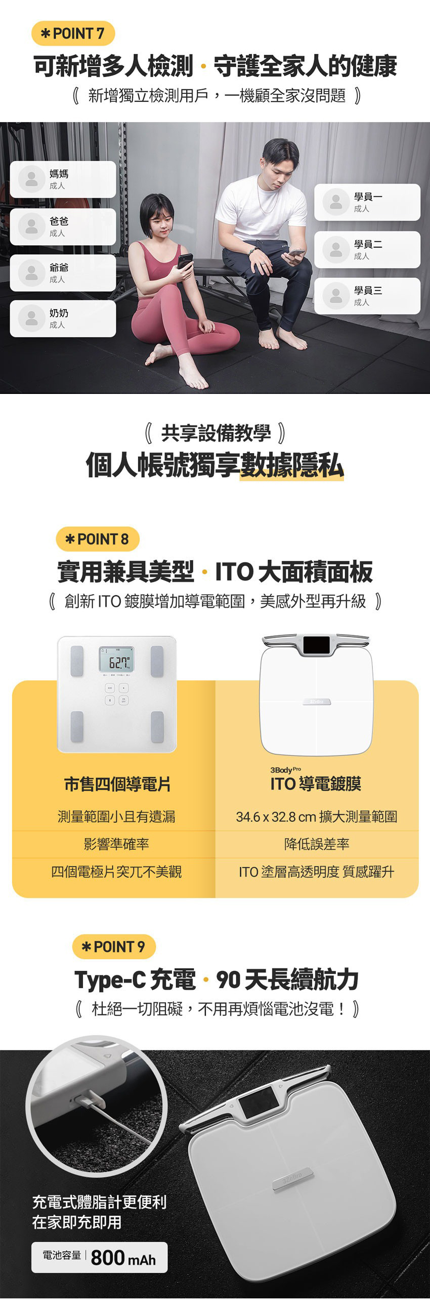 ❼ 可新增多台手機共享體脂計,保護個人數據隱私