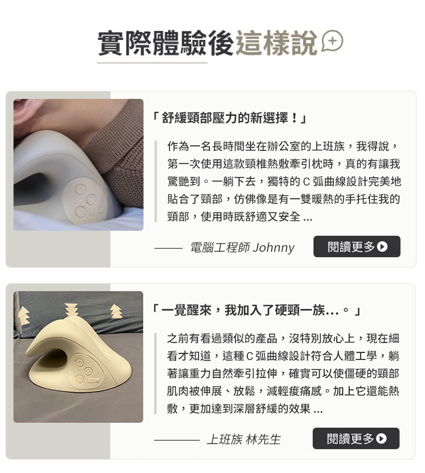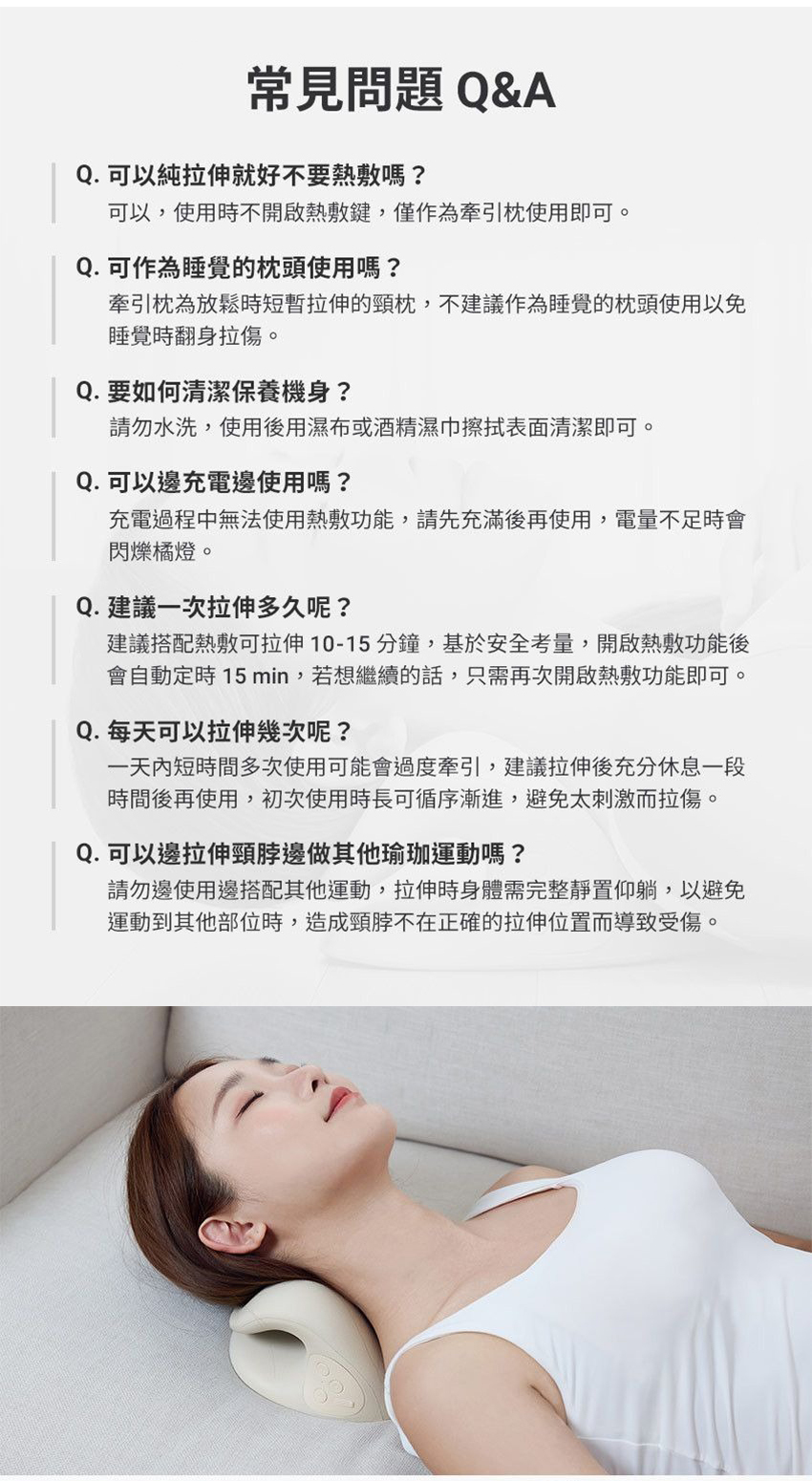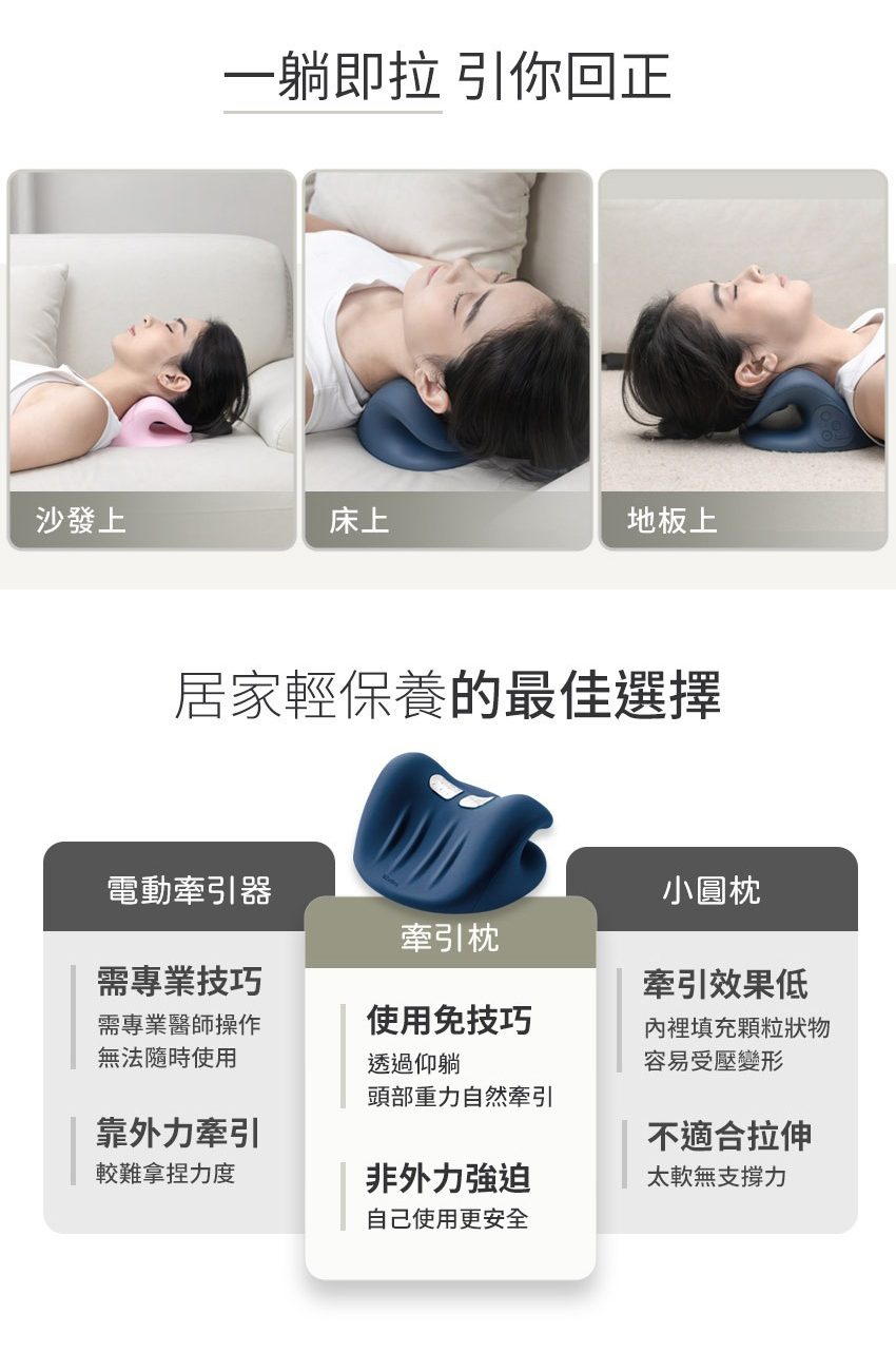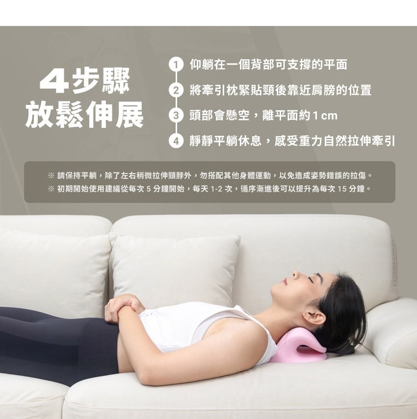 5. 為放鬆時短暫拉伸的頸枕,不建議作為睡覺的枕頭使用,以免翻身時拉傷。
