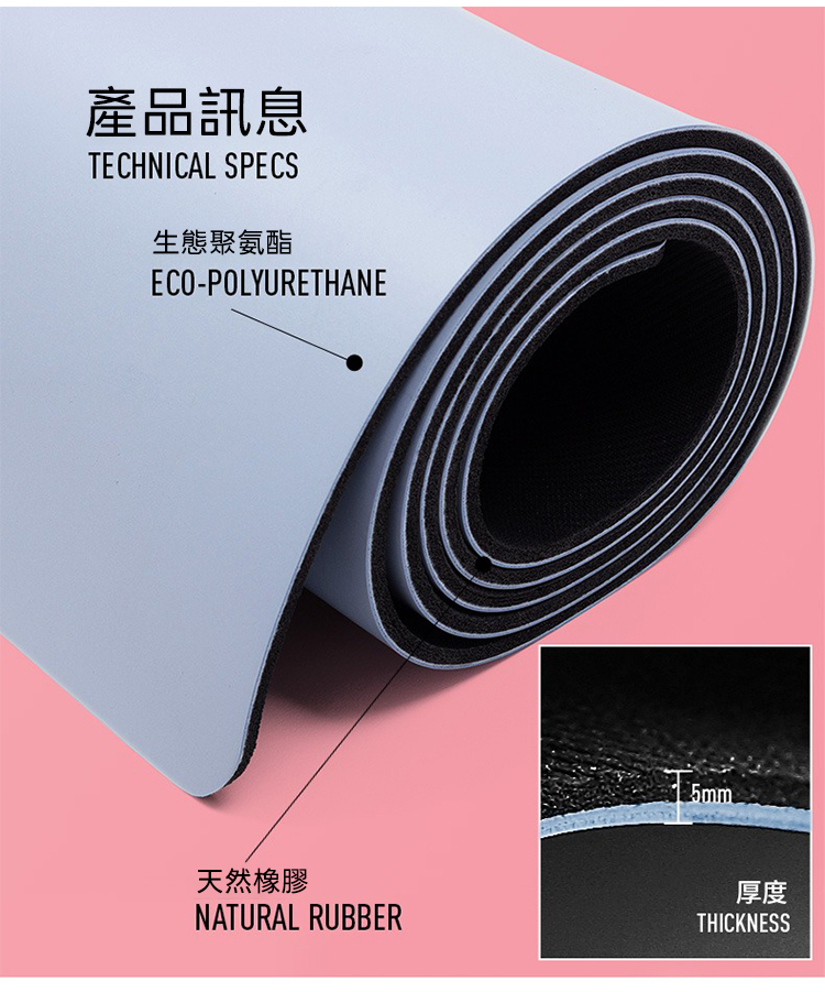 【柔軟回彈】高密度橡膠及厚度提供你最佳的支撐感,讓你的瑜伽練習更穩定踏實。