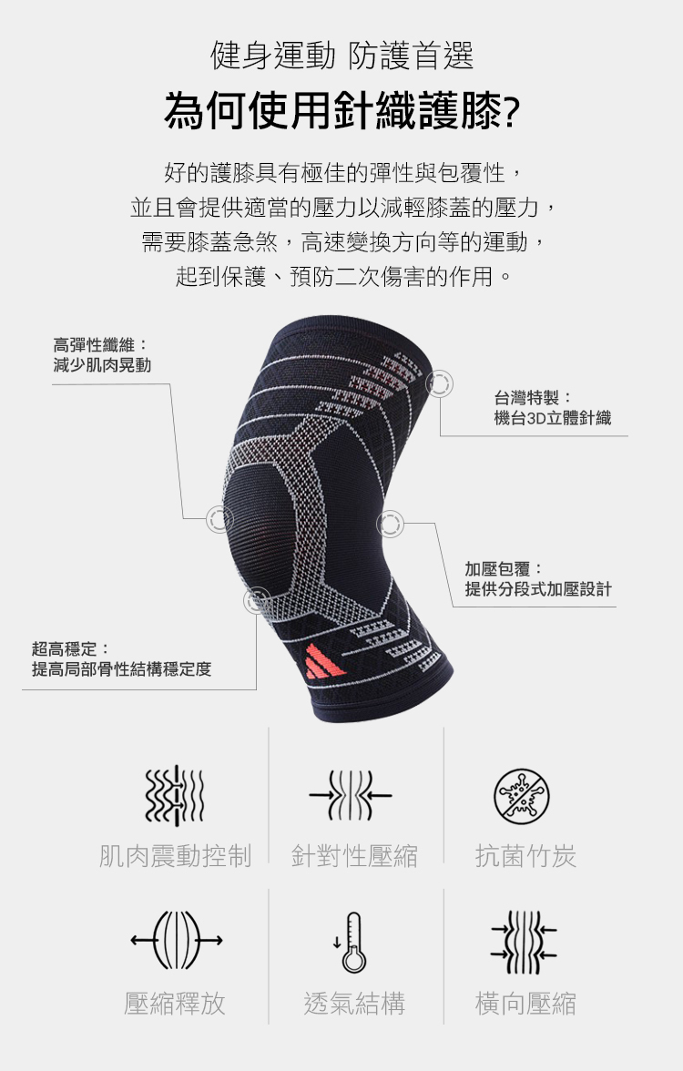 • 高彈不緊繃:線紗交織而成的立體護具,在活動舒適度與靈活度間取得平衡,不影響運動表現。