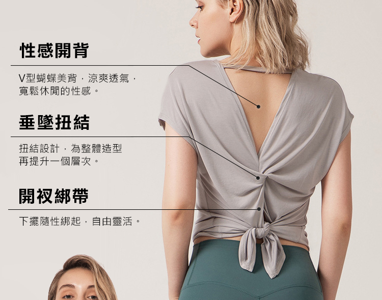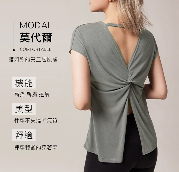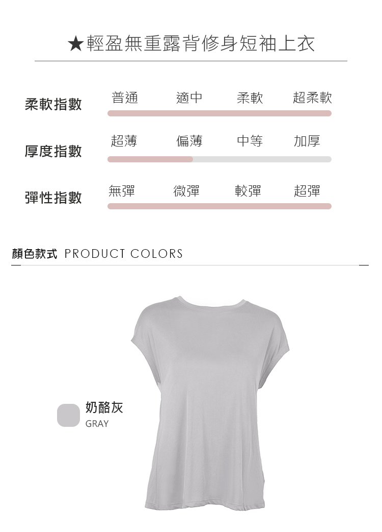 【LOTUS】輕盈無重露背修身短袖上衣-3色