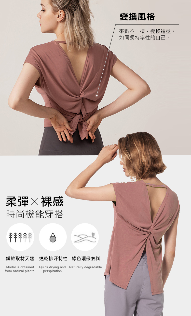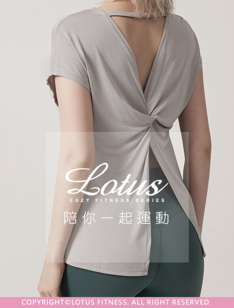 • 【LOTUS】輕盈無重露背修身短袖上衣