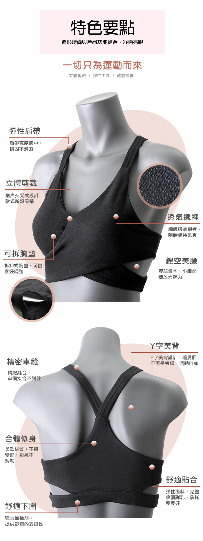 • 布料柔軟親膚不易變形,胸墊自由更換