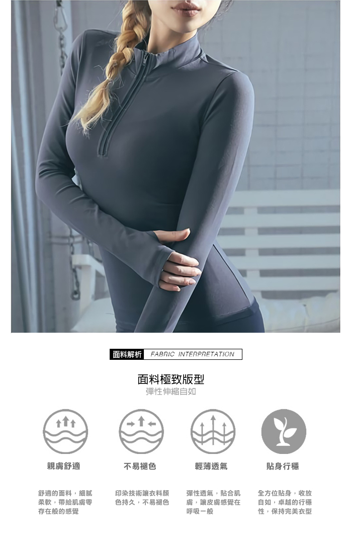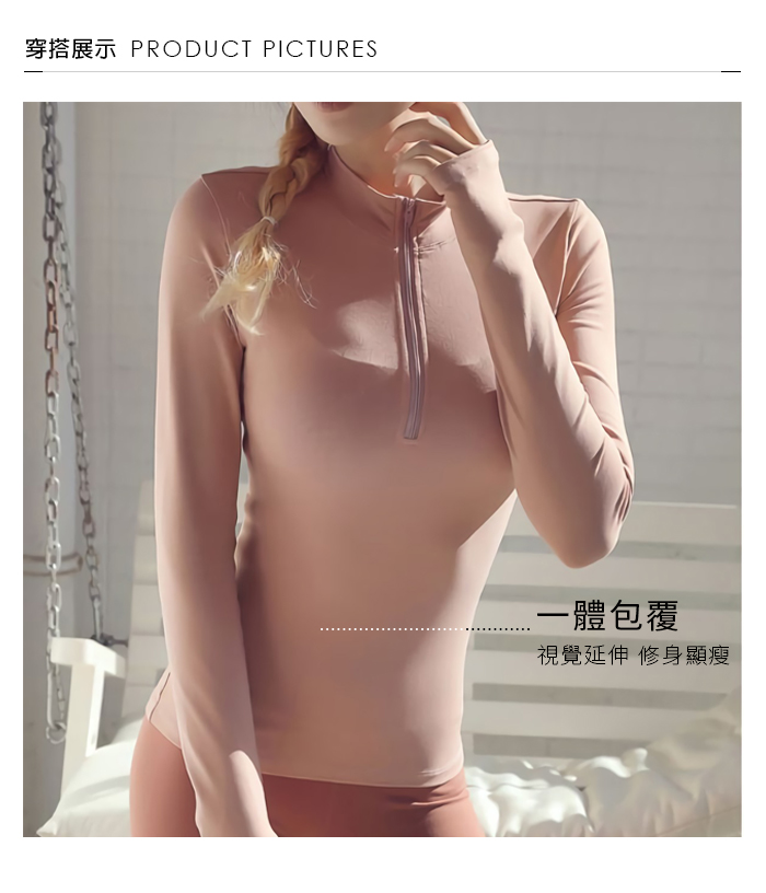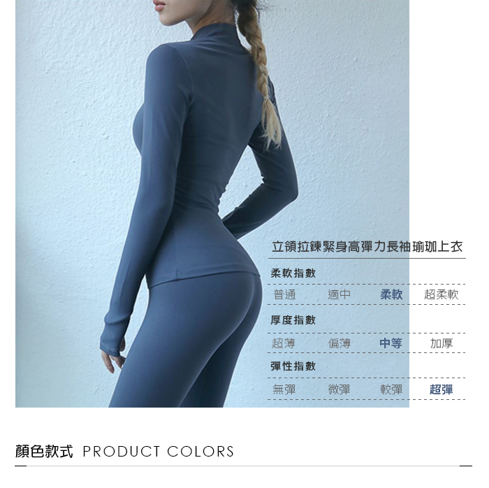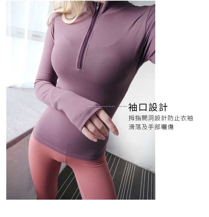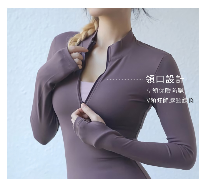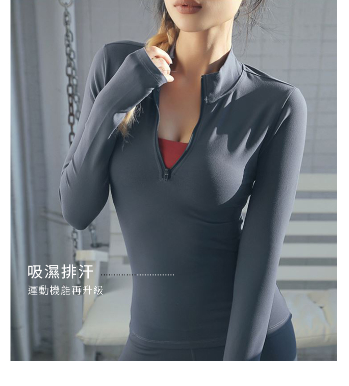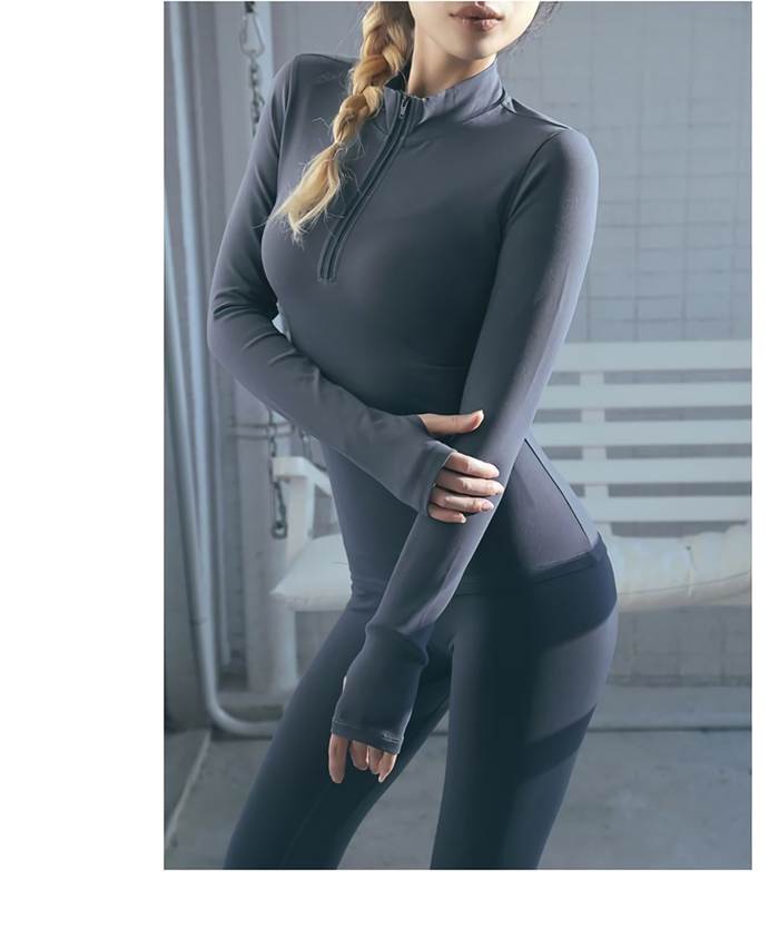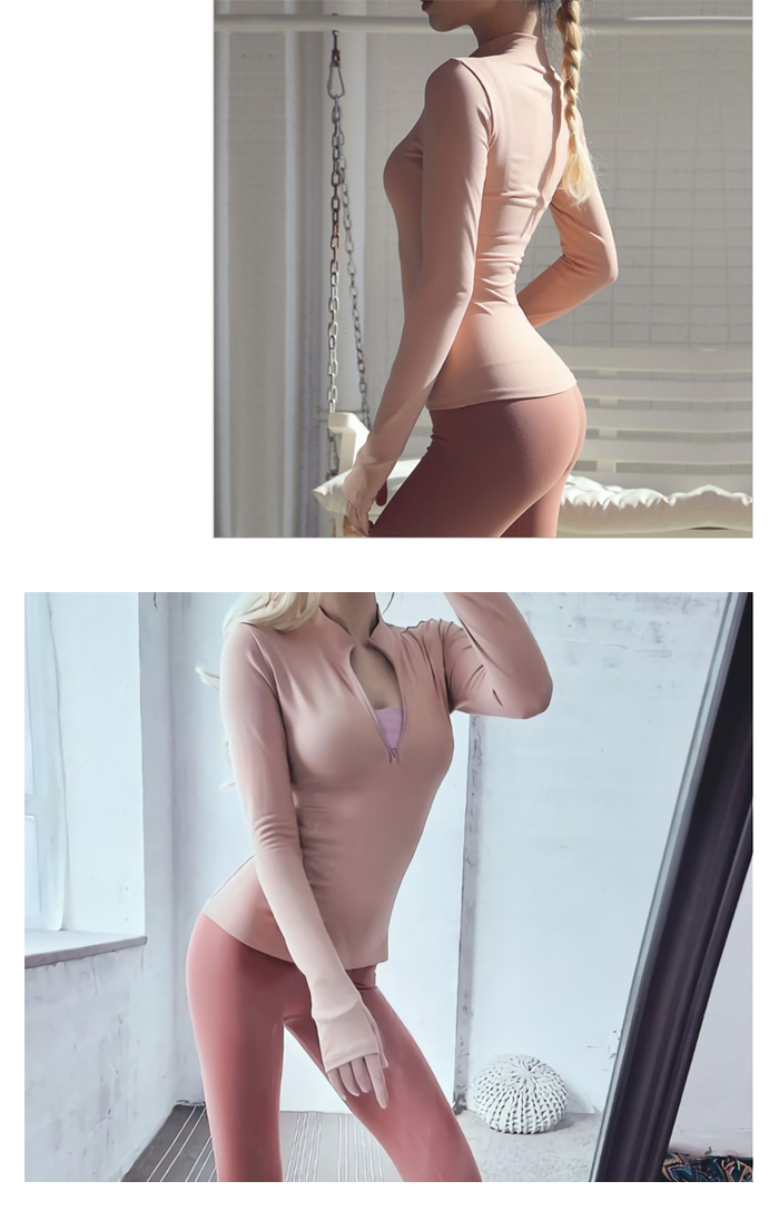 立領拉鍊緊身高彈力長袖瑜珈上衣