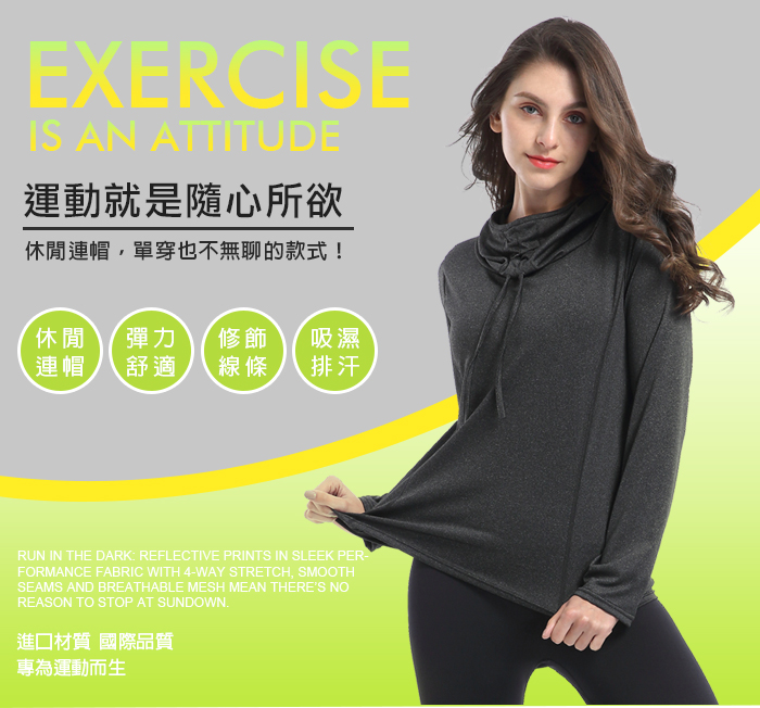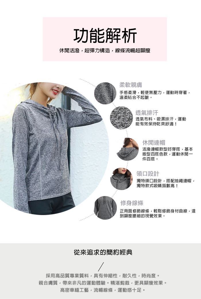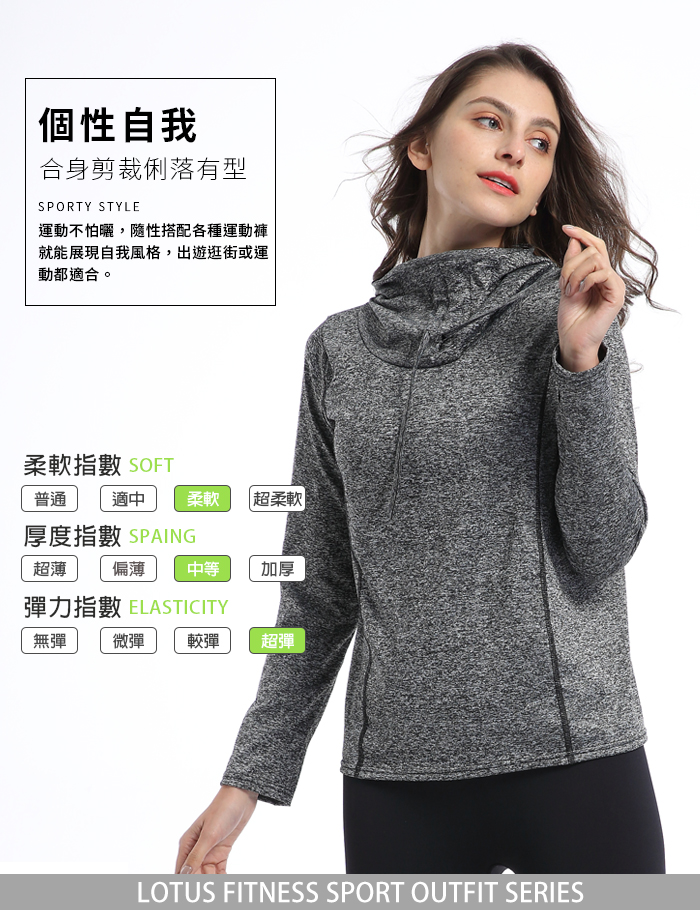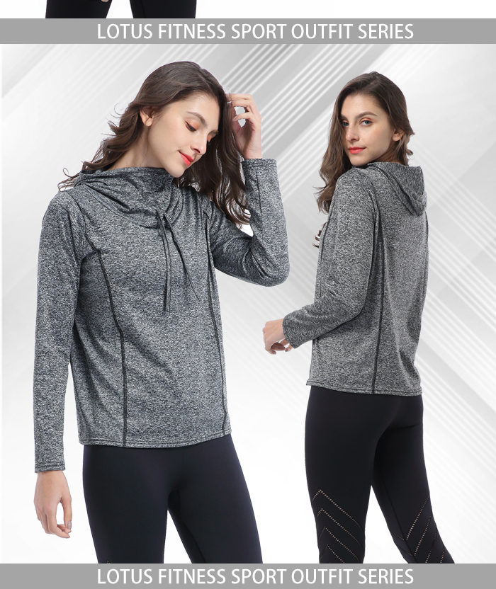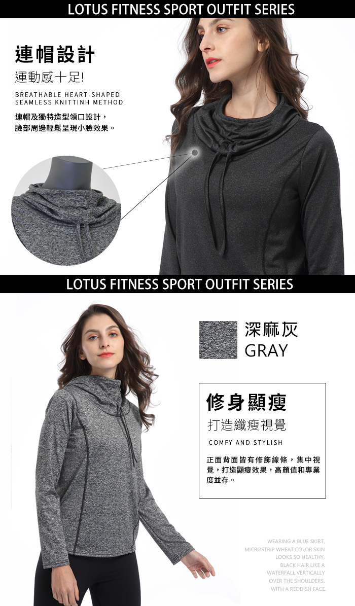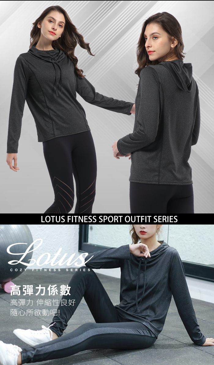 • 【LOTUS】顯瘦線條連帽長袖快乾運動上衣