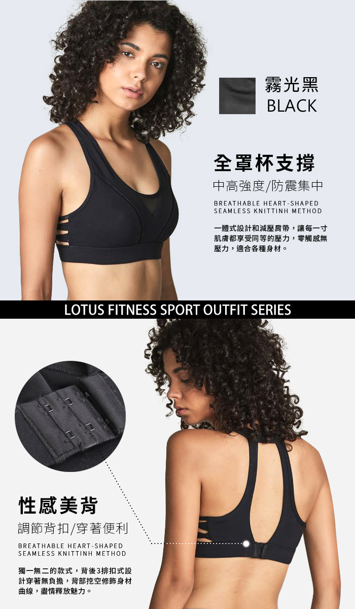 【LOTUS】背扣式集中托高美型運動內衣-霧光黑