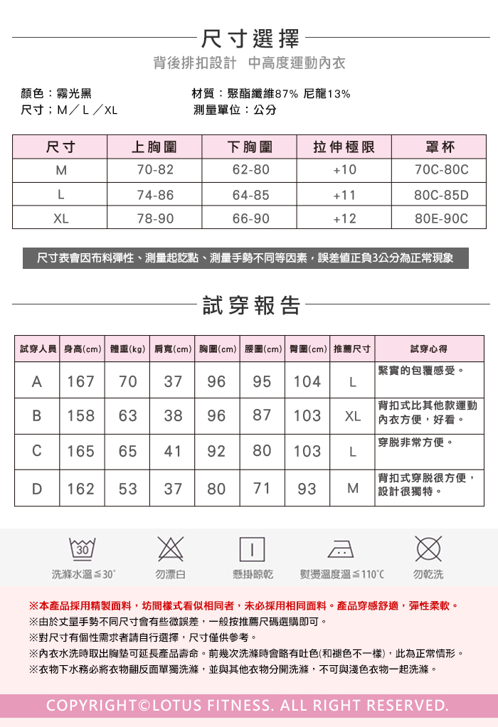 • 【LOTUS】背扣式集中托高美型運動內衣
