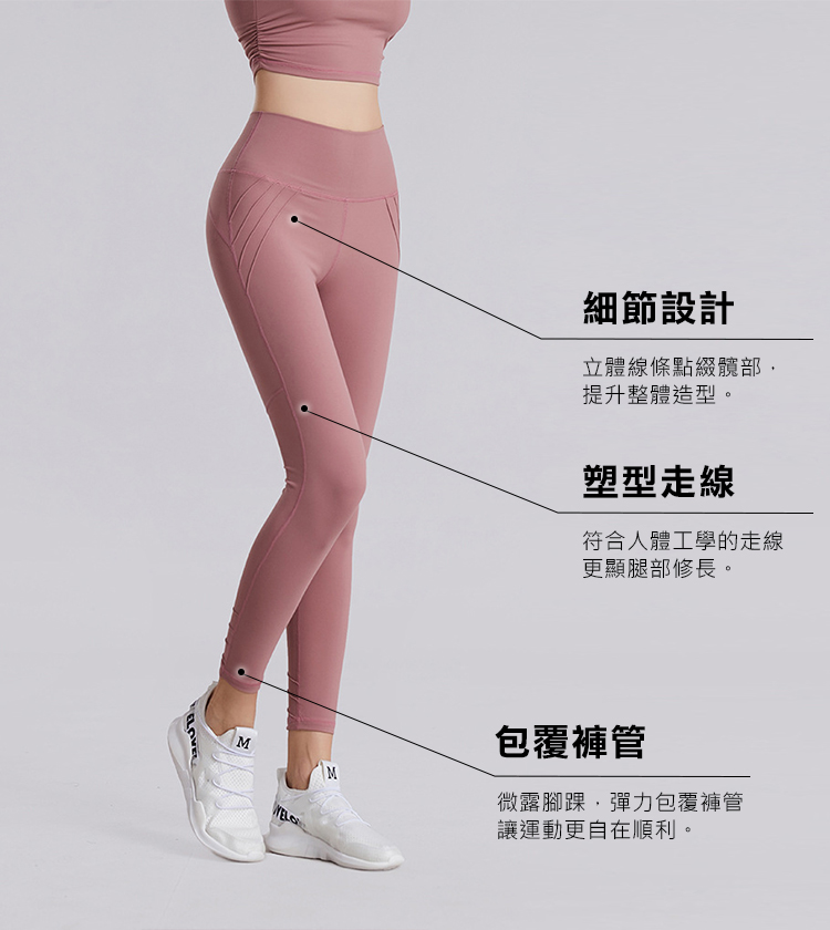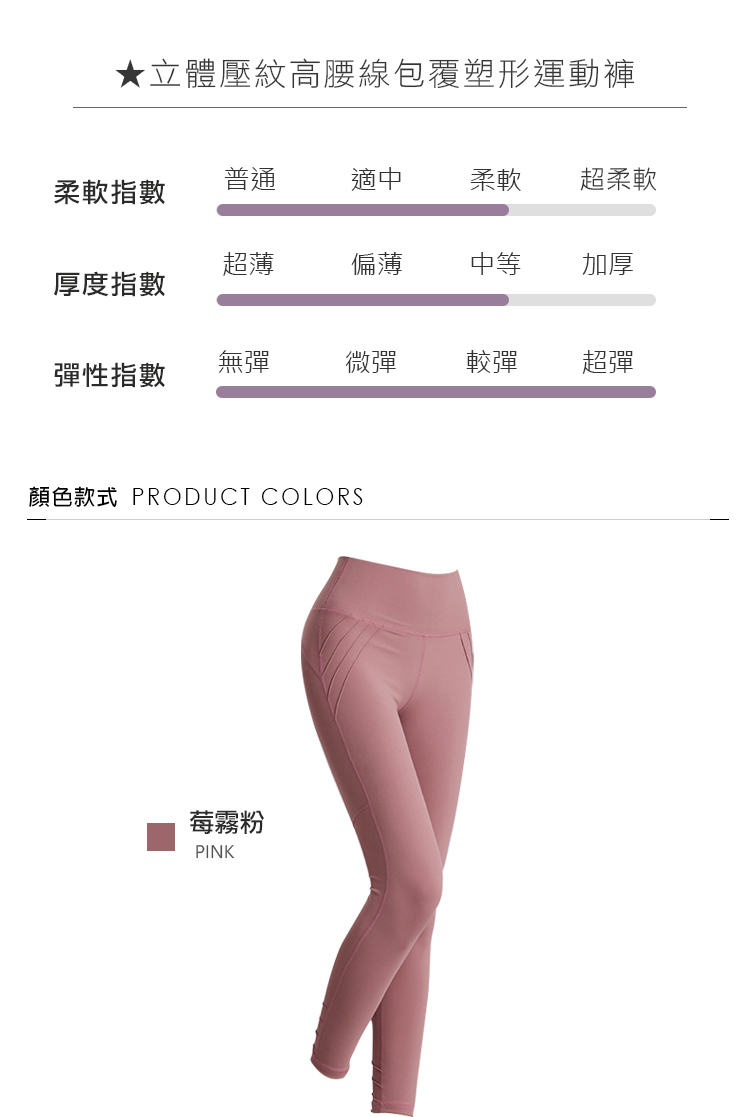 【LOTUS】立體壓紋高腰線包覆塑形運動褲-3色