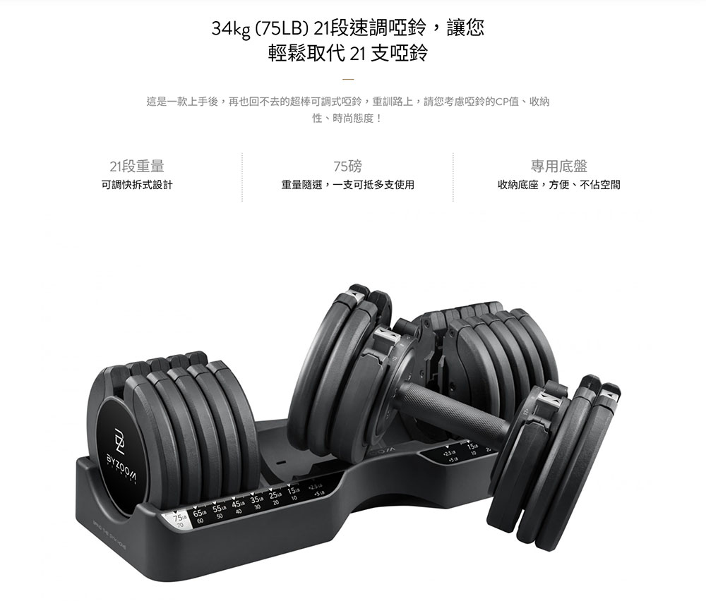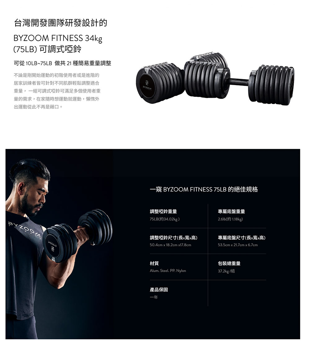 ‧ 一組包含75LB調整啞鈴x1、專屬底盤x1
