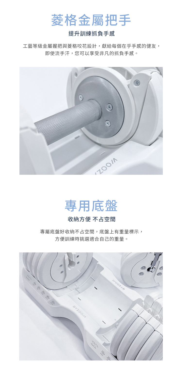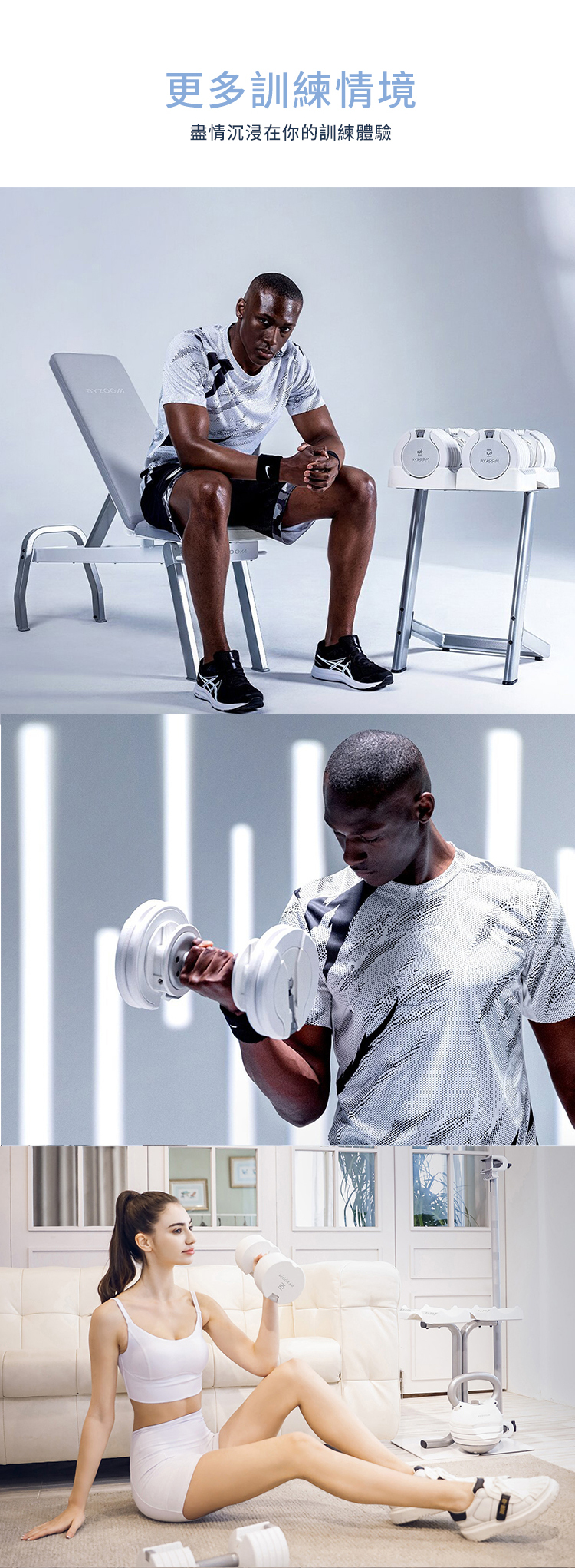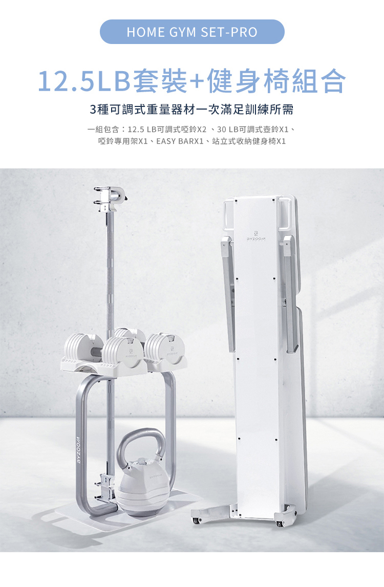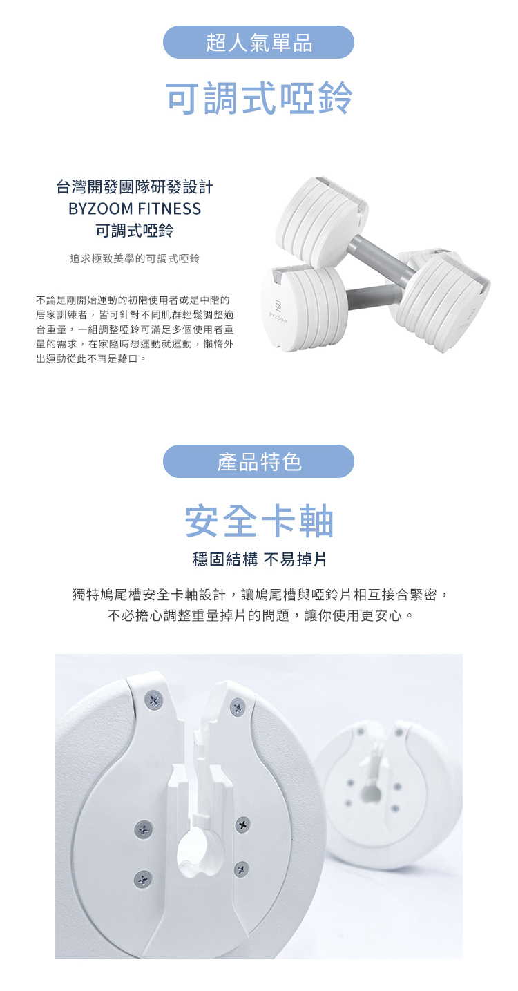 不論是剛開始運動的初階使用者或是進階的居家訓練者,皆可針對不同肌群輕鬆調整適合重量