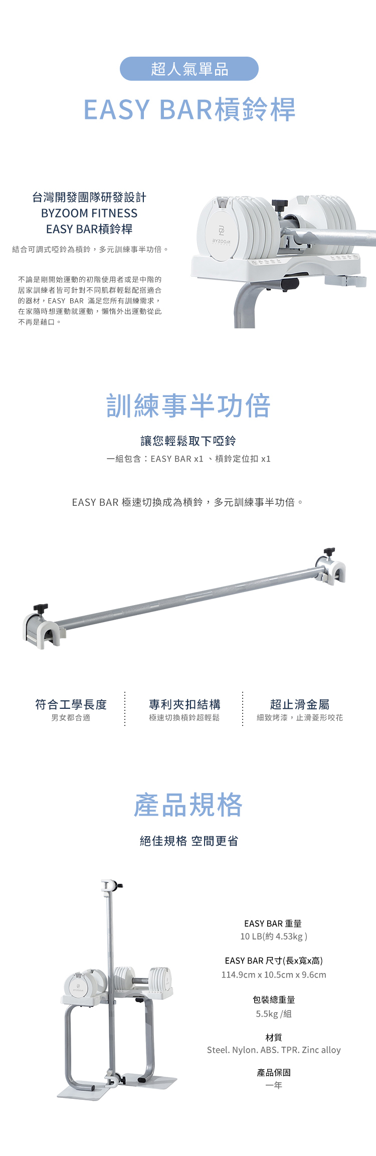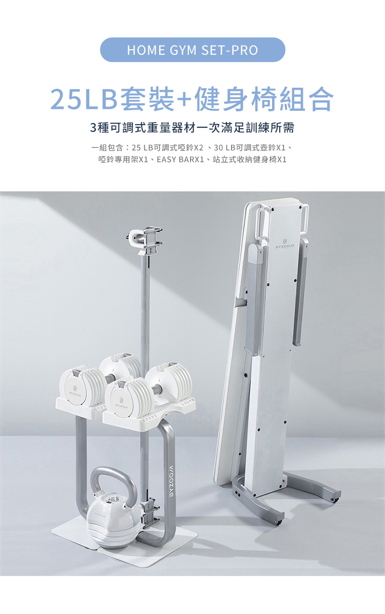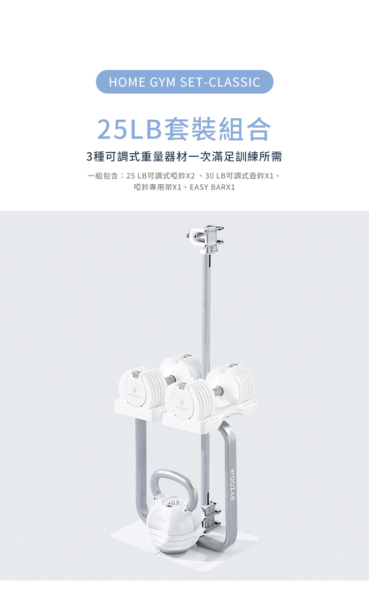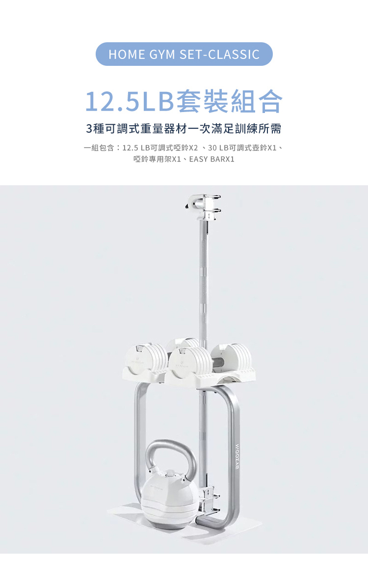 不論是剛開始運動的初階使用者或是進階的居家訓練者,皆可針對不同肌群輕鬆調整適合重量