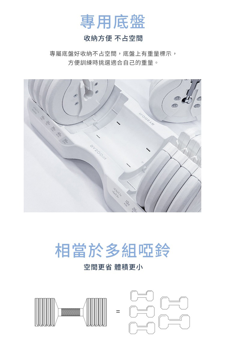 - 一組包含 12.5 LB調整啞鈴x1、專屬底盤x1