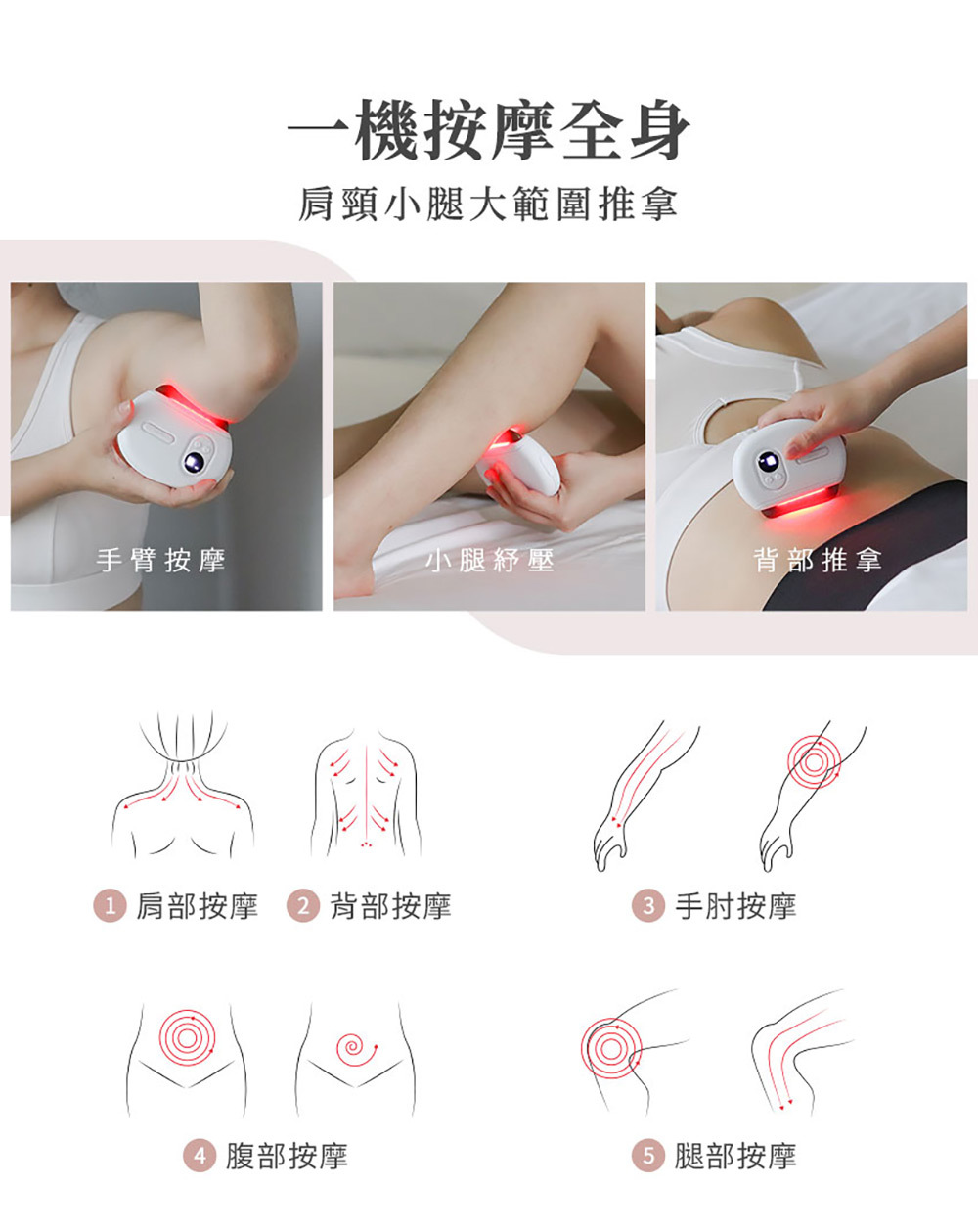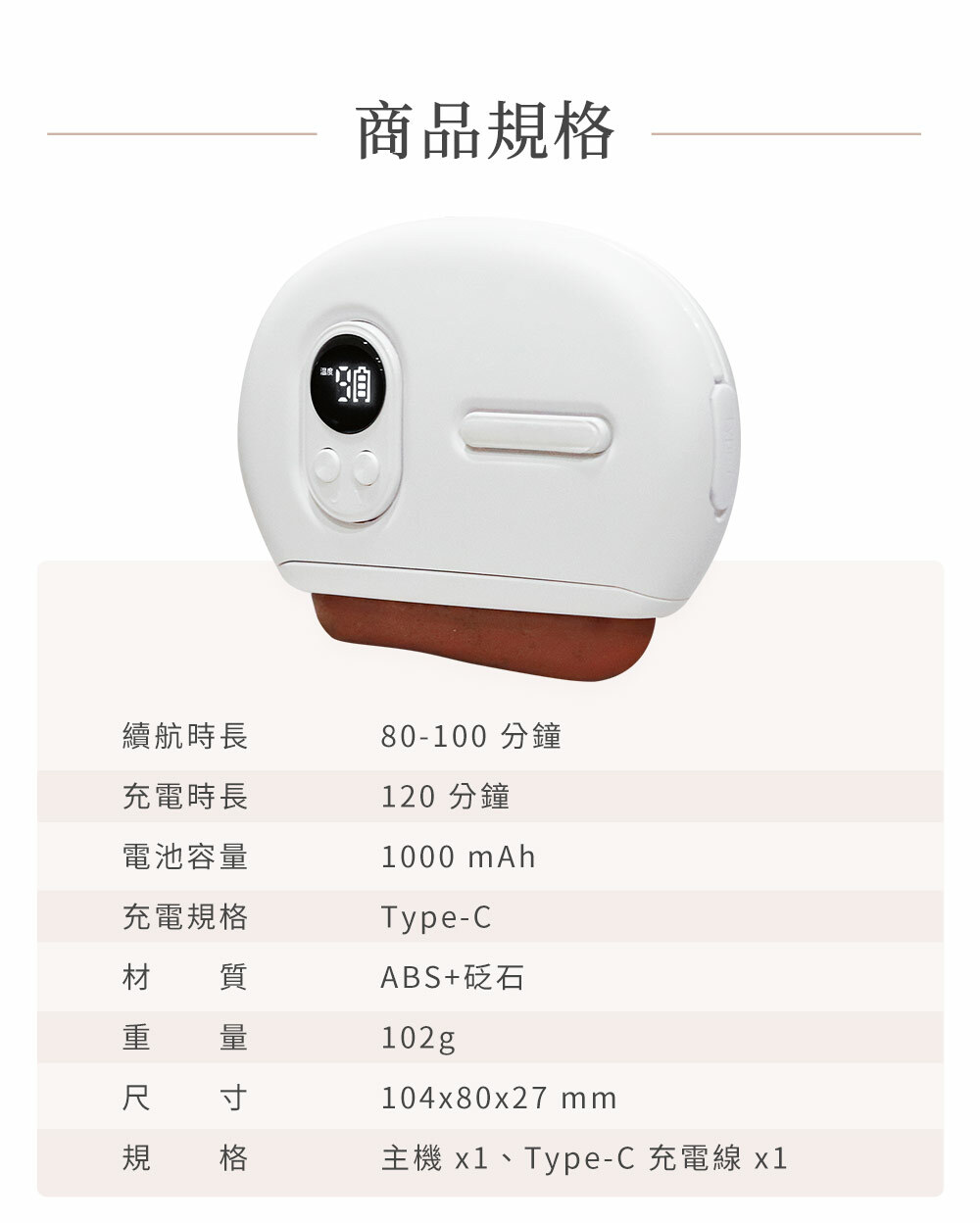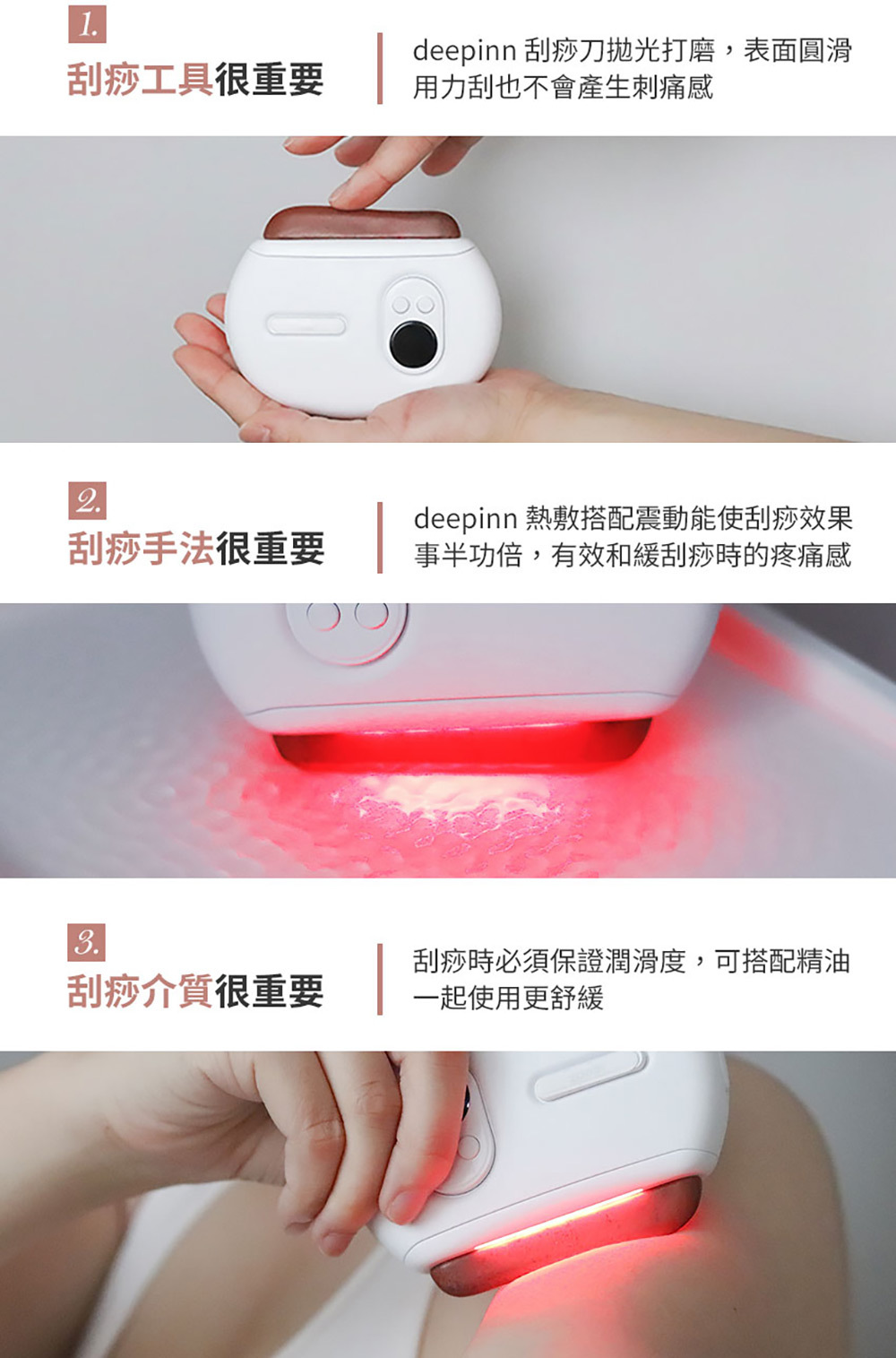 注意事項:※ 與傳統蠻力刮痧方式相比較不會產生疼痛不適感,但實際疼痛感受依個人體感依據將有所不同。