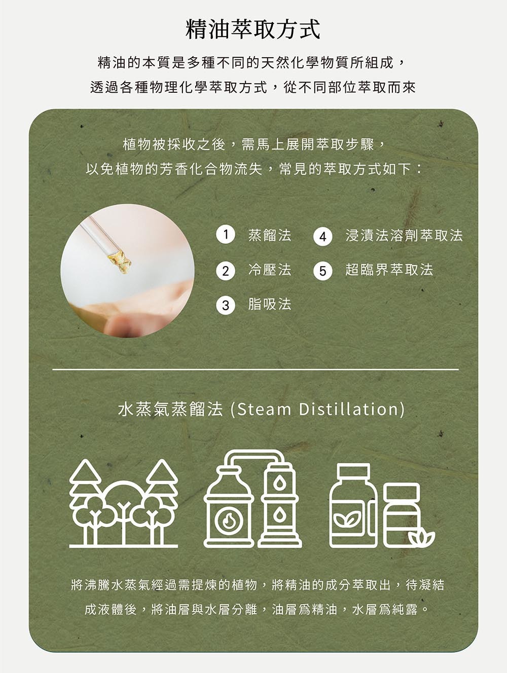 萃取方式:水蒸氣蒸餾SteamDistillation