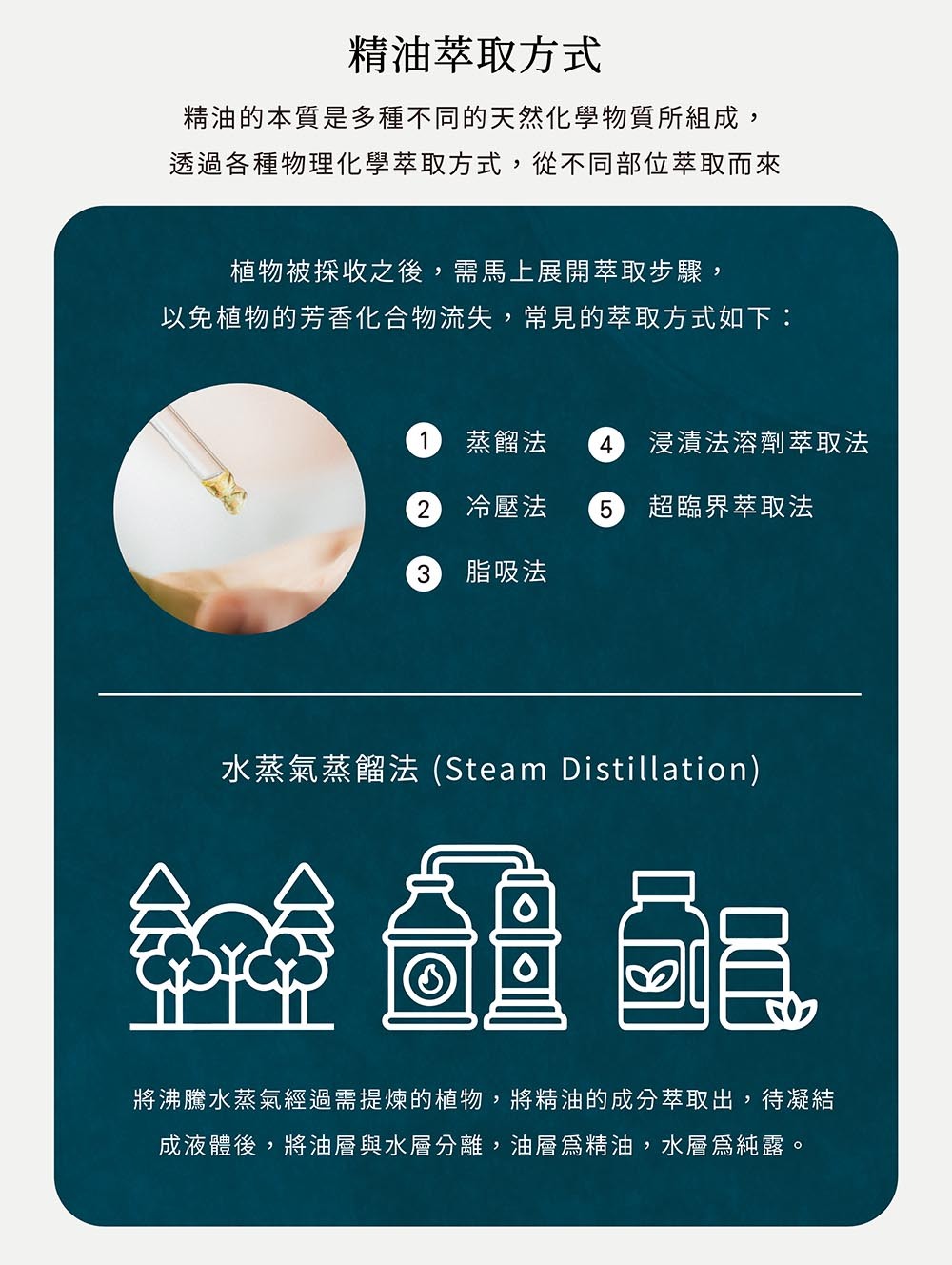 萃取方式:水蒸氣蒸餾Steam Distillation