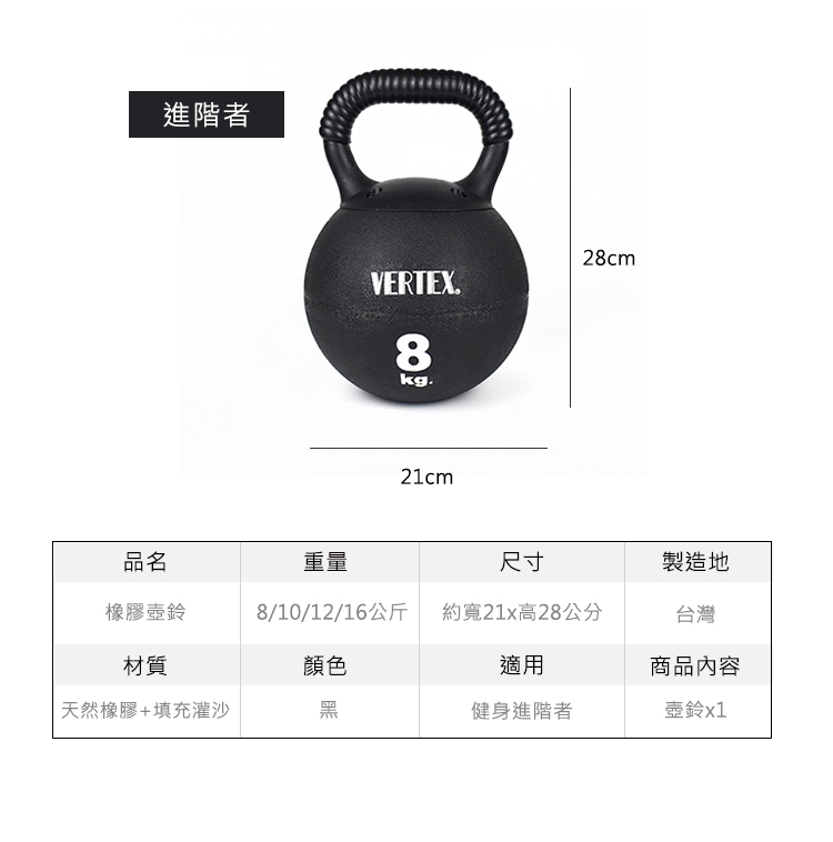 橡膠壺鈴外表由高級橡膠包覆,內裡環保鐵砂填充