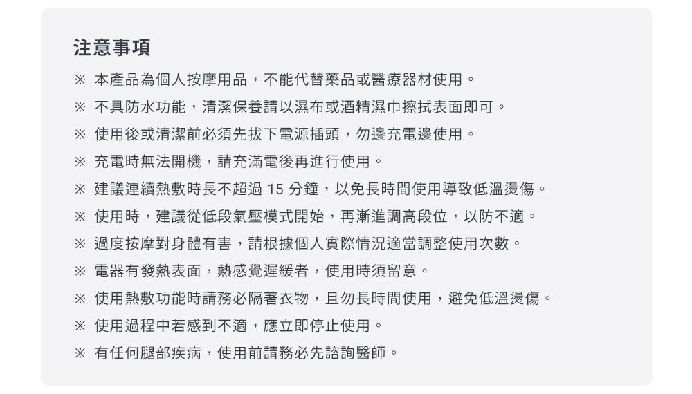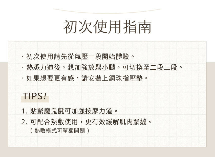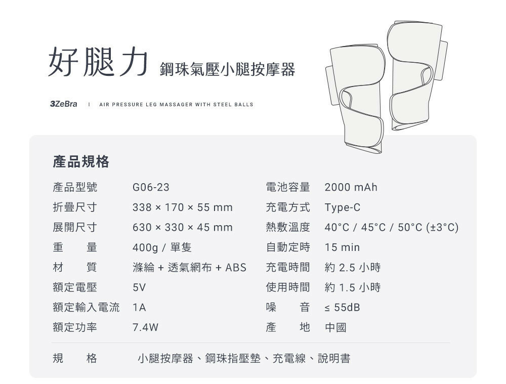 規 格:小腿按摩器、鋼珠指壓墊、充電線、說明書