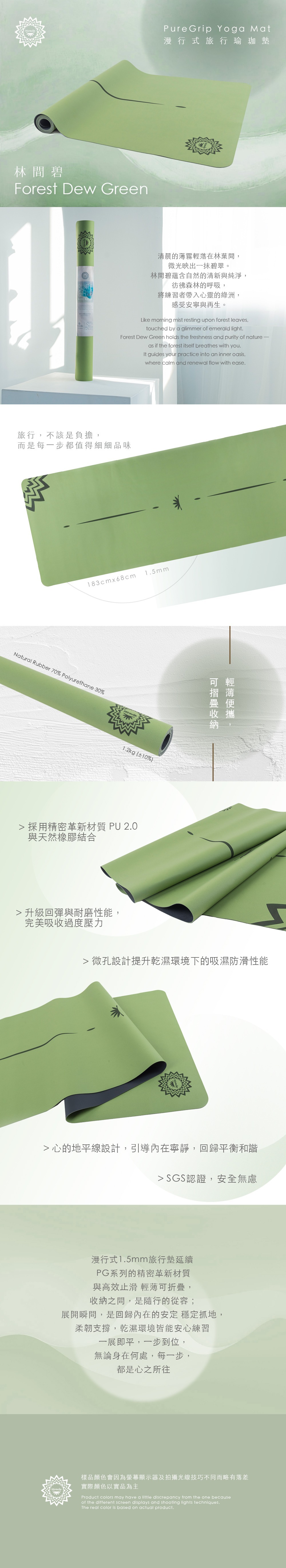 漫行式1.5mm旅行墊延續 PG系列的精密革新材質與高效止滑