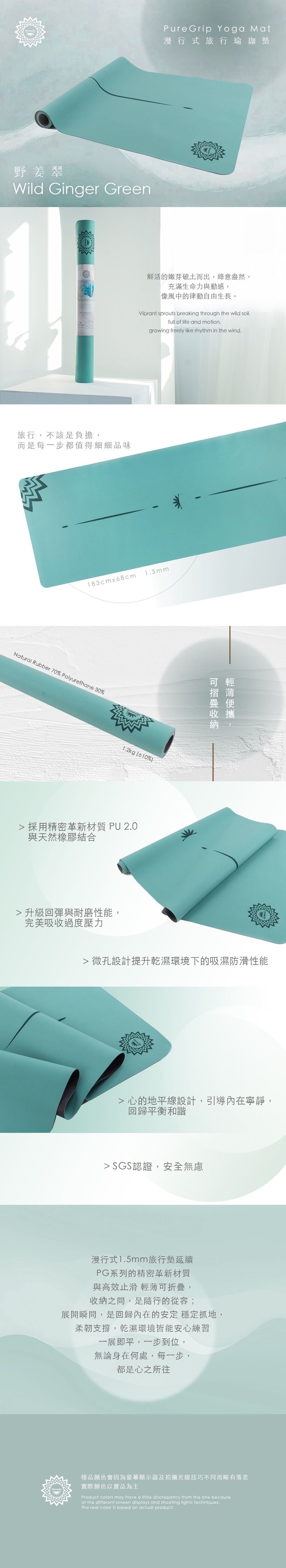 漫行式1.5mm旅行墊延續 PG系列的精密革新材質與高效止滑