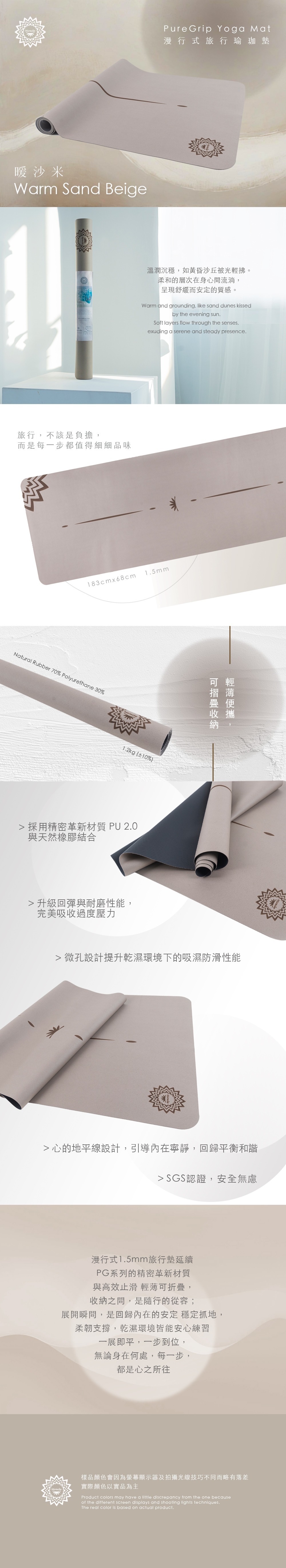 漫行式1.5mm旅行墊延續 PG系列的精密革新材質與高效止滑