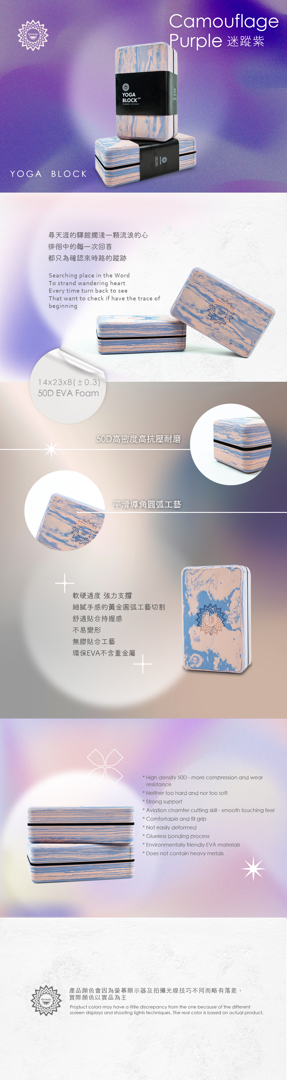 Miracle墨瑞革 一體成形環保高密度瑜珈磚50D 迷蹤紫