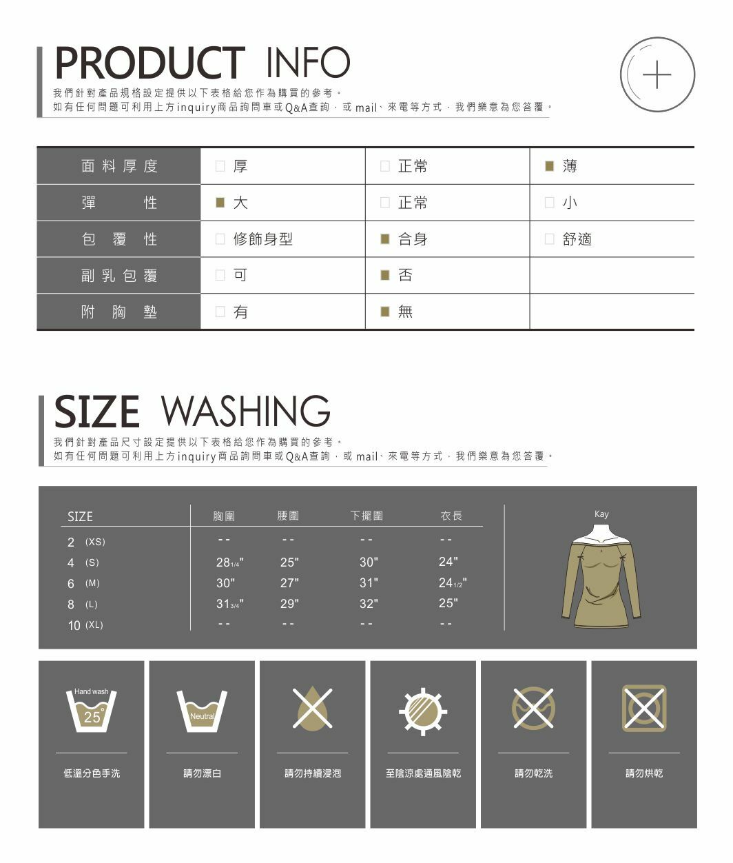 採用柔軟、彈性佳的萊卡布種,讓妳穿的舒適又自在。