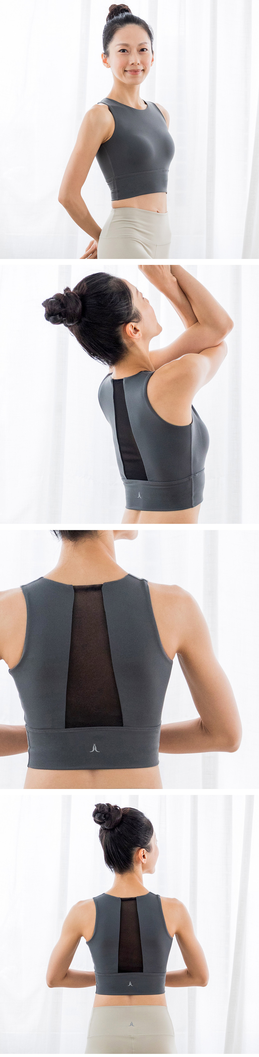 俐落時尚風,質感典雅鐵灰色,穿出優雅氣質,結合美背網紗設計,更加透氣舒適,符合亞洲人身形,完美貼合肌膚,展現身體曼妙曲線。