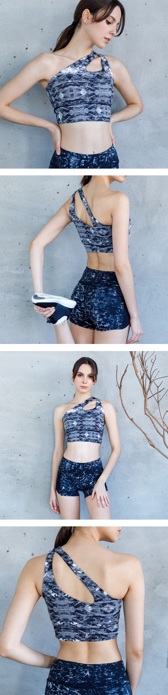 不對襯簍空斜肩設計,簡約不失造型感,採用高彈親膚面料,舒適貼身但不會造成緊繃,運動的同時也時髦性感又有型。