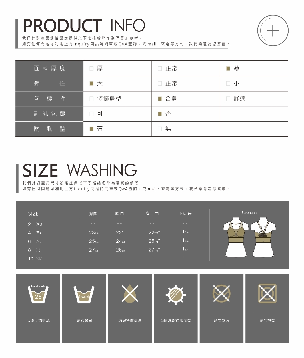 附贈:高密度加厚胸墊