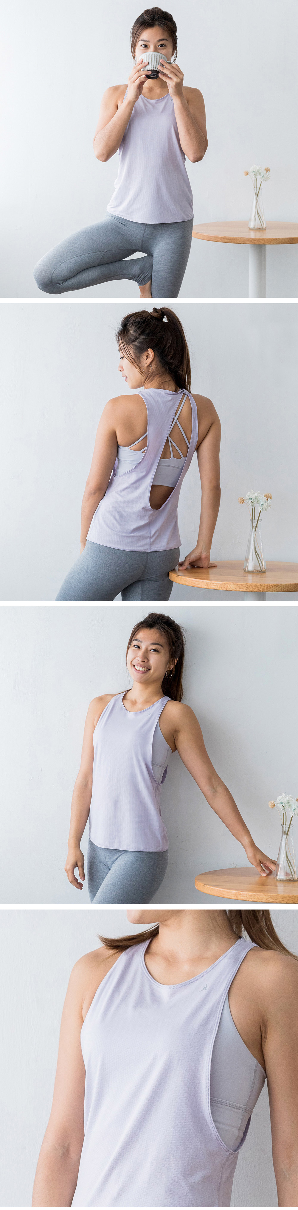 無袖運動背心,質感親膚細緻,大挖背造型,更加透氣舒適,更能凸顯曼妙曲線,適合搭配運動內衣,展現不同的運動風貌!