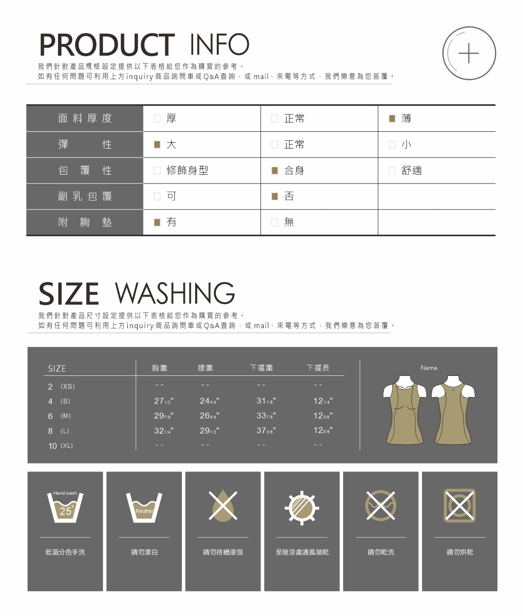 NAMASTE獨家設計版型,台灣製造,符合亞洲人的身形曲線。