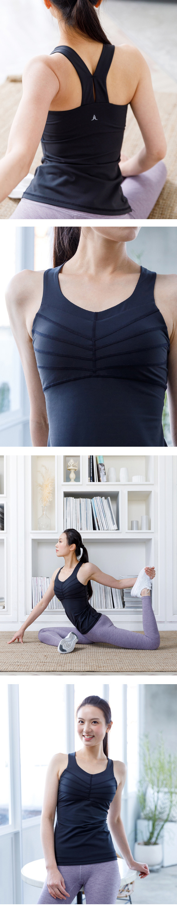 層次剪接造型上衣,嶄露典雅氣質魅力,完整包覆曲線,透氣舒適不緊繃,運動同時也展現時尚魅力風采。