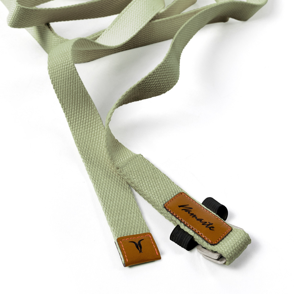 方形鑄鐵扣環,可平整牢固地固定瑜珈繩,耐用不鬆脫滑動。