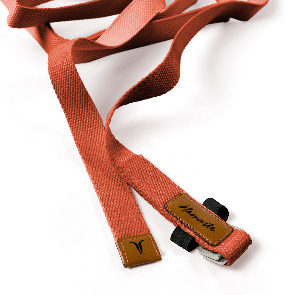 方形鑄鐵扣環,可平整牢固地固定瑜珈繩,耐用不鬆脫滑動。