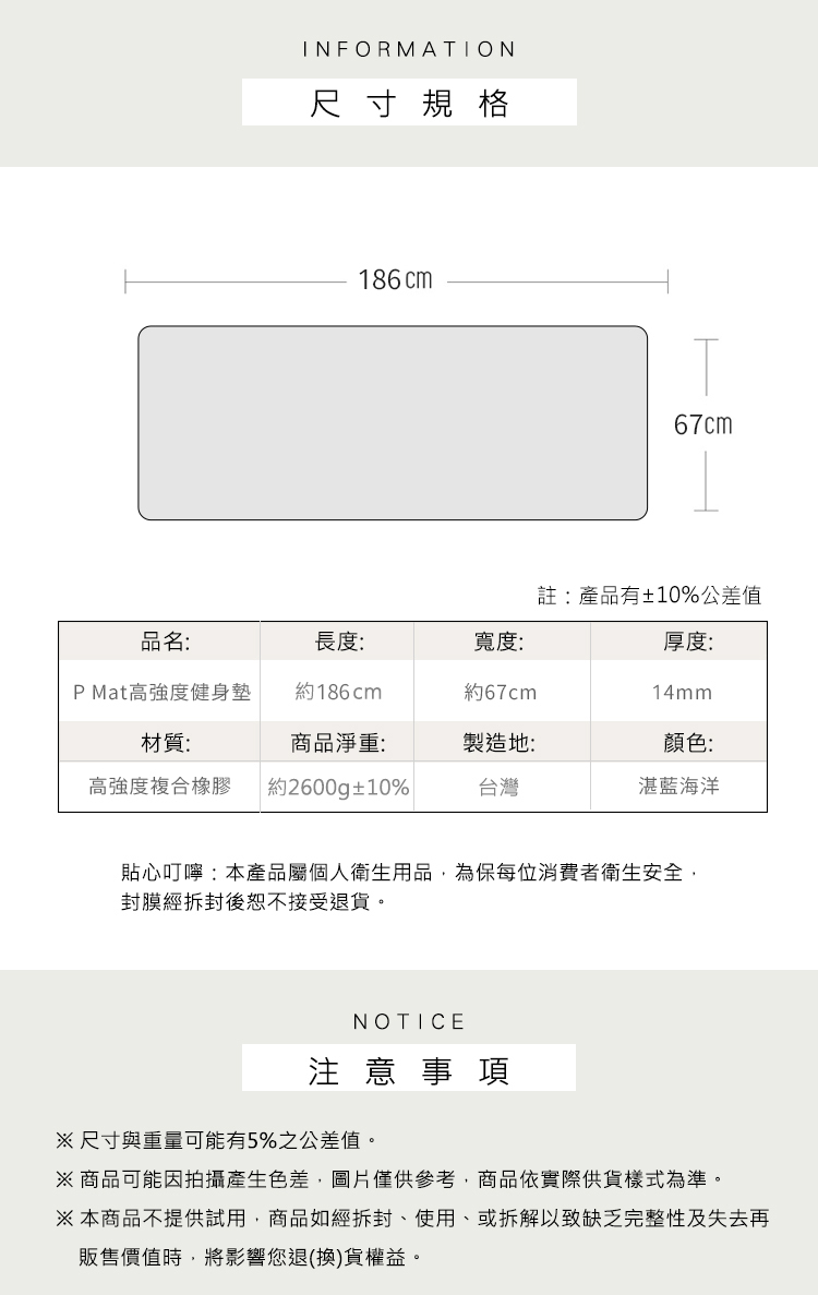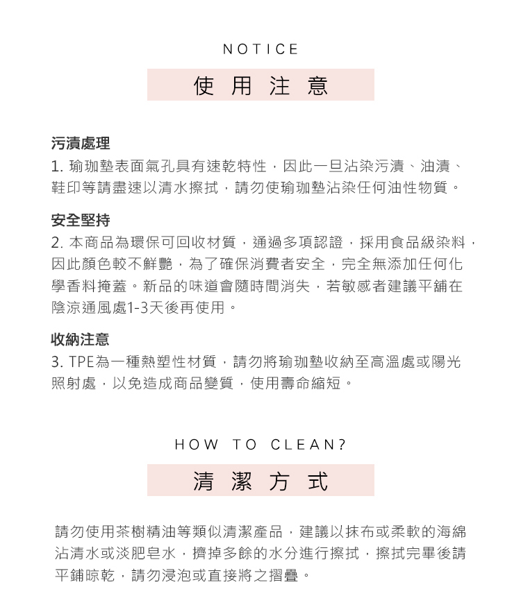 ※ 瑜珈墊在生產發泡的過程中可能因氣孔而產生小凹洞,未超過3個、直徑3mm的凹洞,都在正常值範圍內,非屬瑕疵。