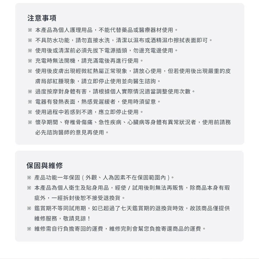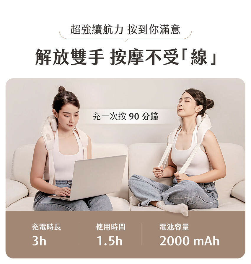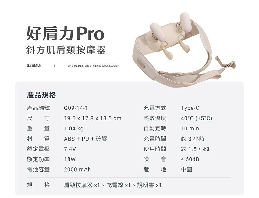 規 格:肩頸按摩器 x1、充電線 x1、說明書