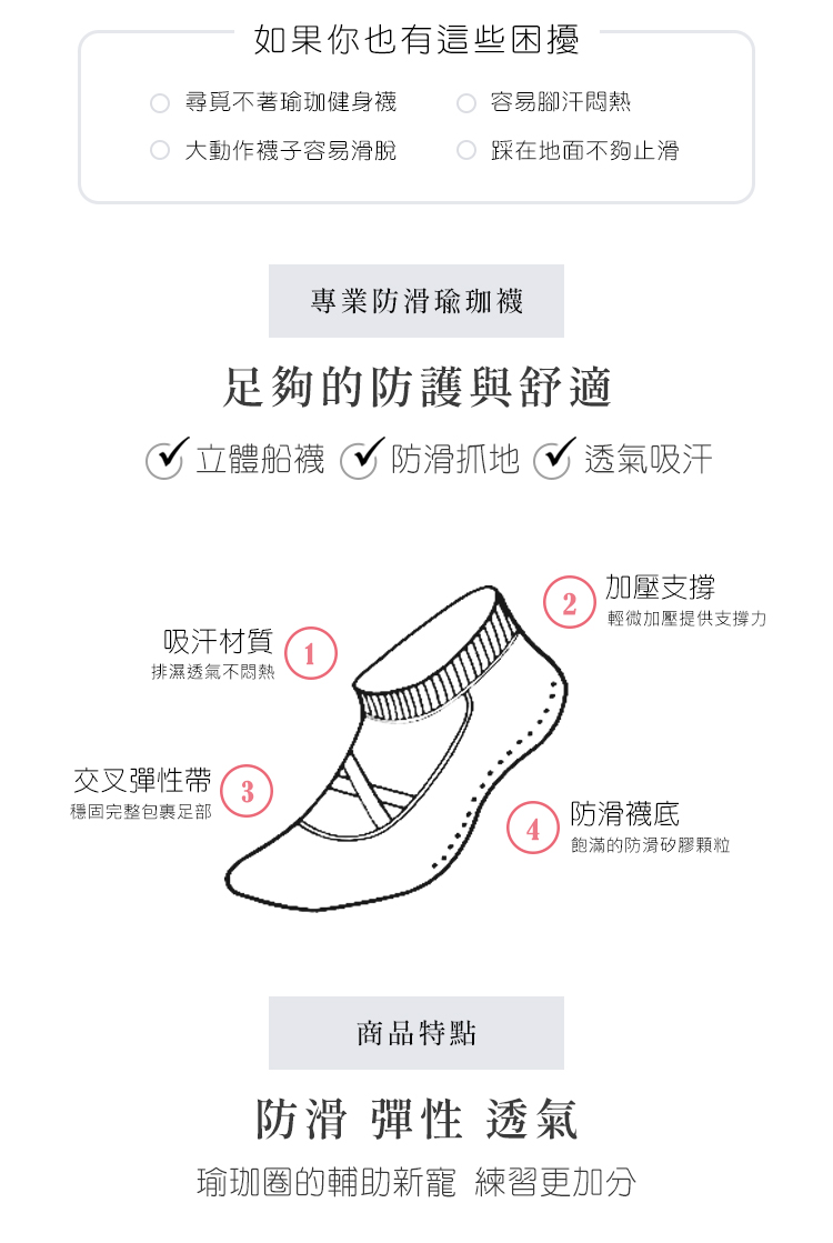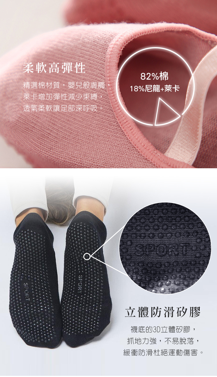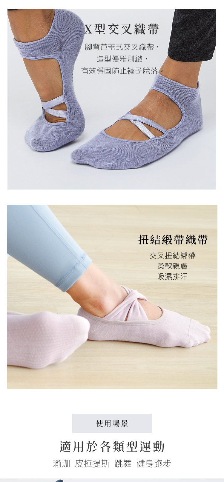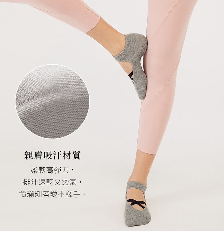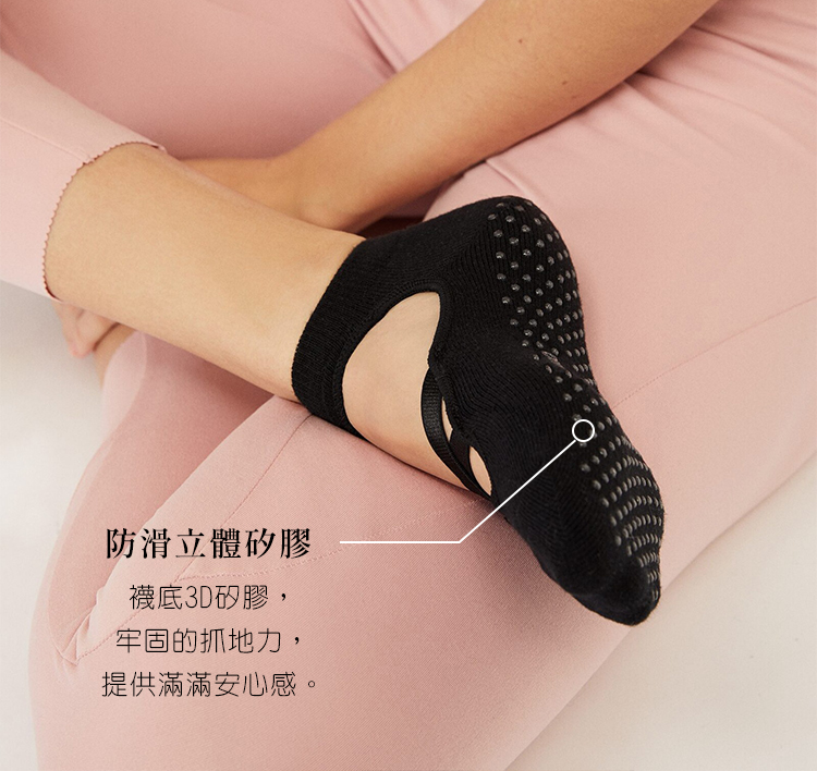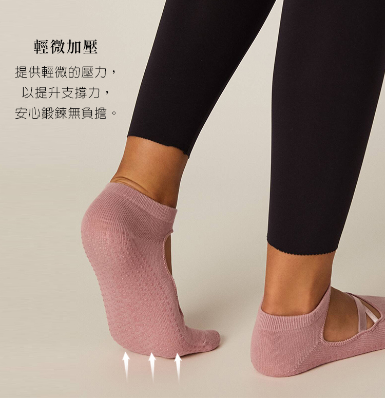 無感貼合的交叉綁帶,防止襪子滑動脫落