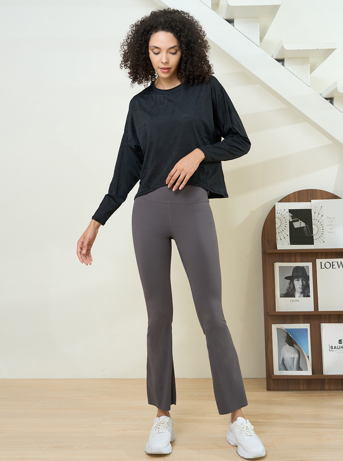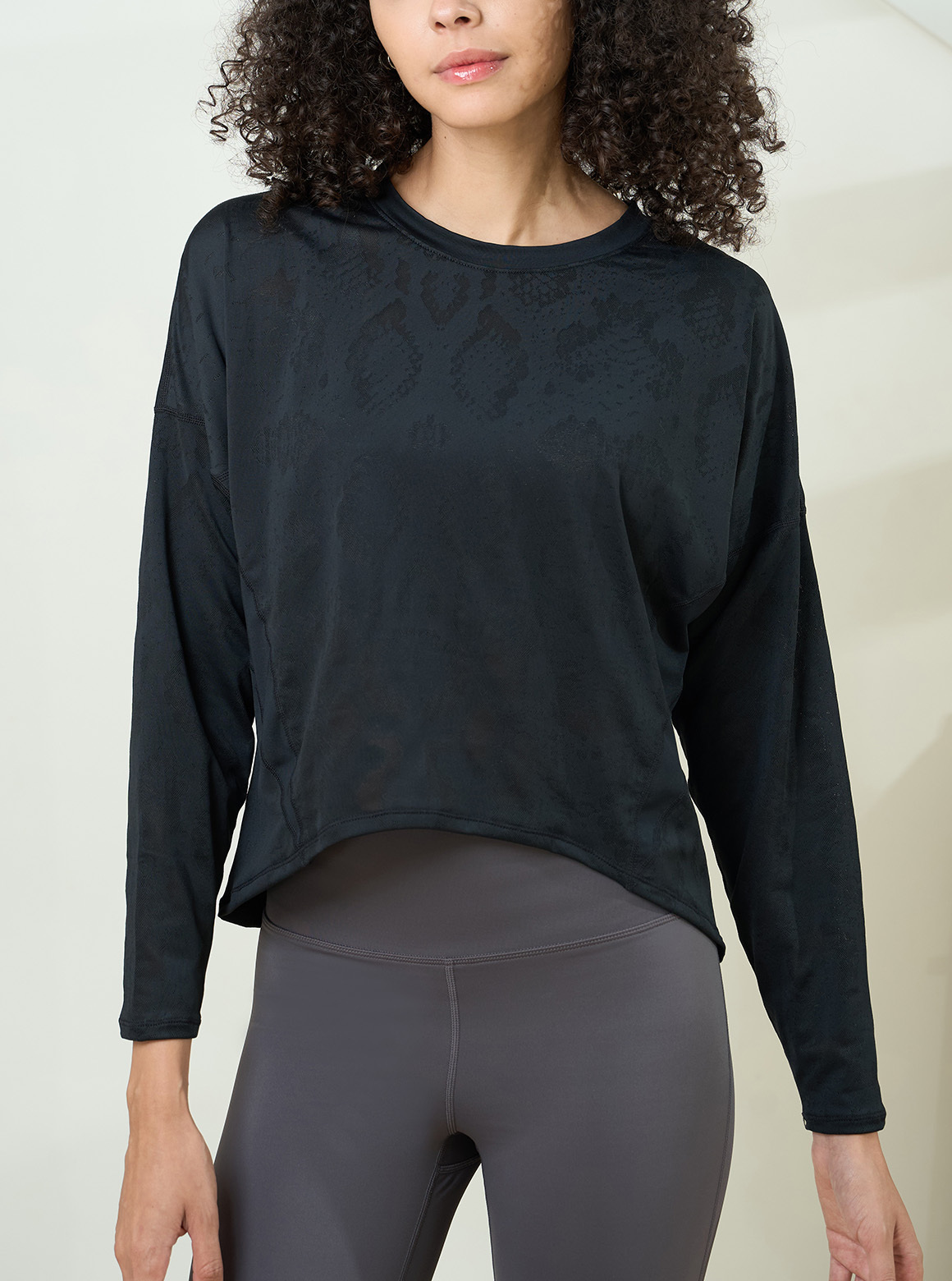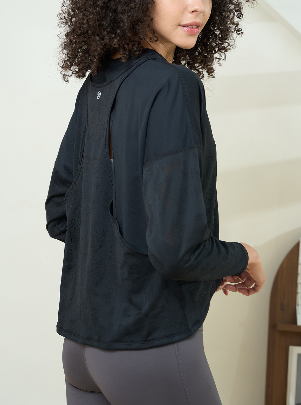 S2N質感DESIGN FOR LIFE廓型織紋裸膚長袖上衣,將舒彈布料與不規則裸膚織紋拼接並融合特殊剪裁設計,打造層次襯托衣著細節與紋理。俐落U領與梯字版型,弧形下擺前短後長呈現顯瘦好比例;其落肩袖型與腰部曲線剪接更加獨具魅力,透過裸膚紋路與黑白原色布料讓視覺更添加層次效果,可隨性搭配簡約運內亦可單穿展現時髦穿著美學。