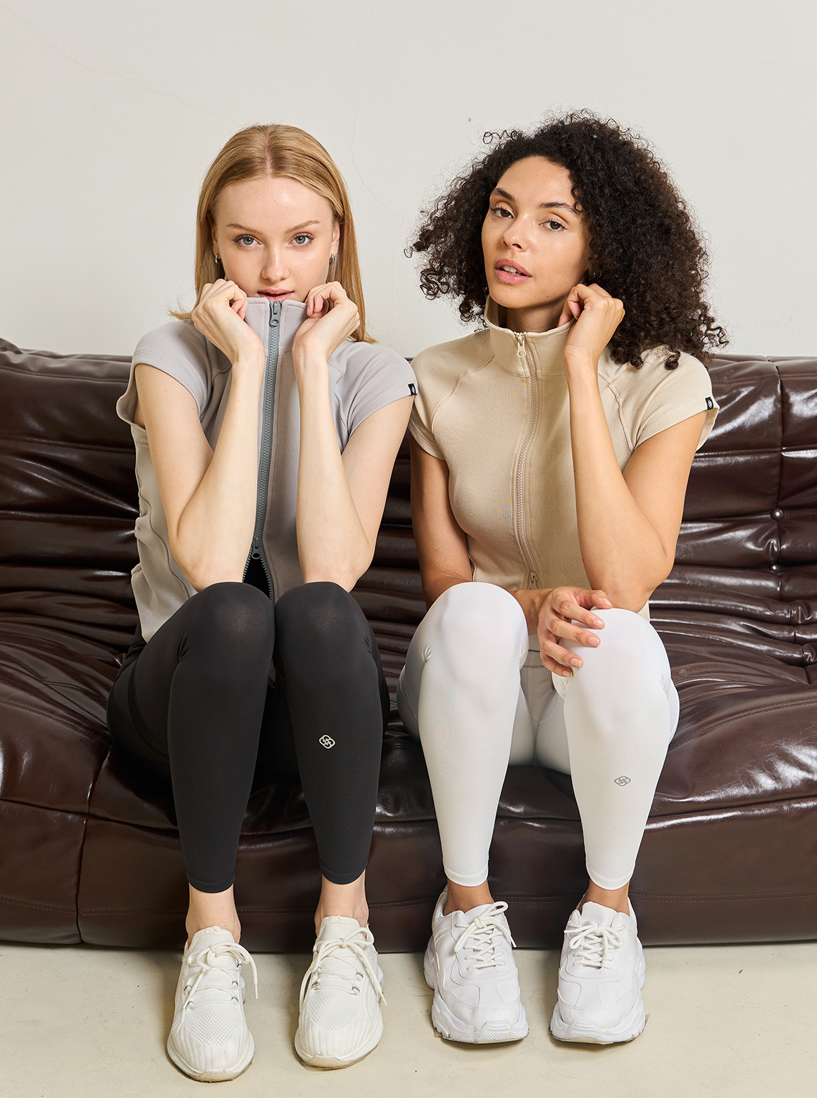 S2N時髦DON'T CARE立領雙拉鍊曲線上衣,細緻柔彈羅紋肌理面料,雙開拉鍊增加多變時髦造型,加強立領挺度,觸感即為柔順親膚,腰際褶皺設計修飾腰部線條,可日常單穿或搭配運內穿搭有型,展現休閒與運動時裝美學。