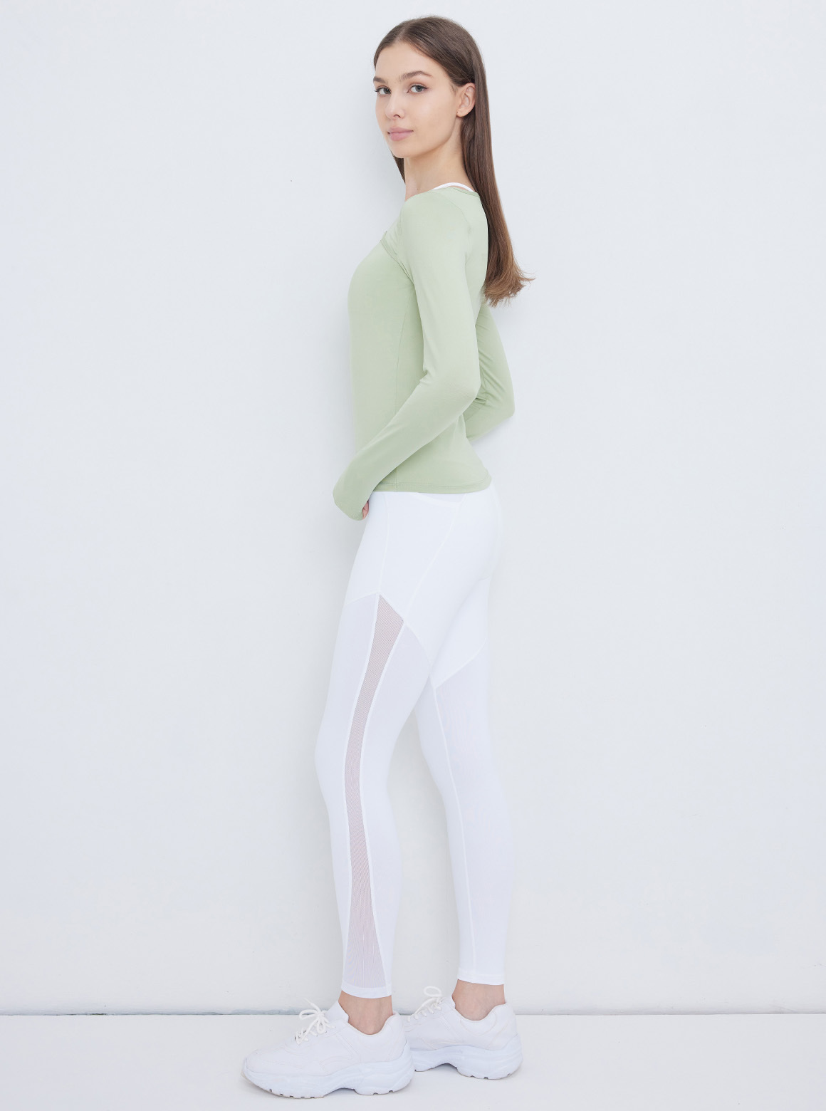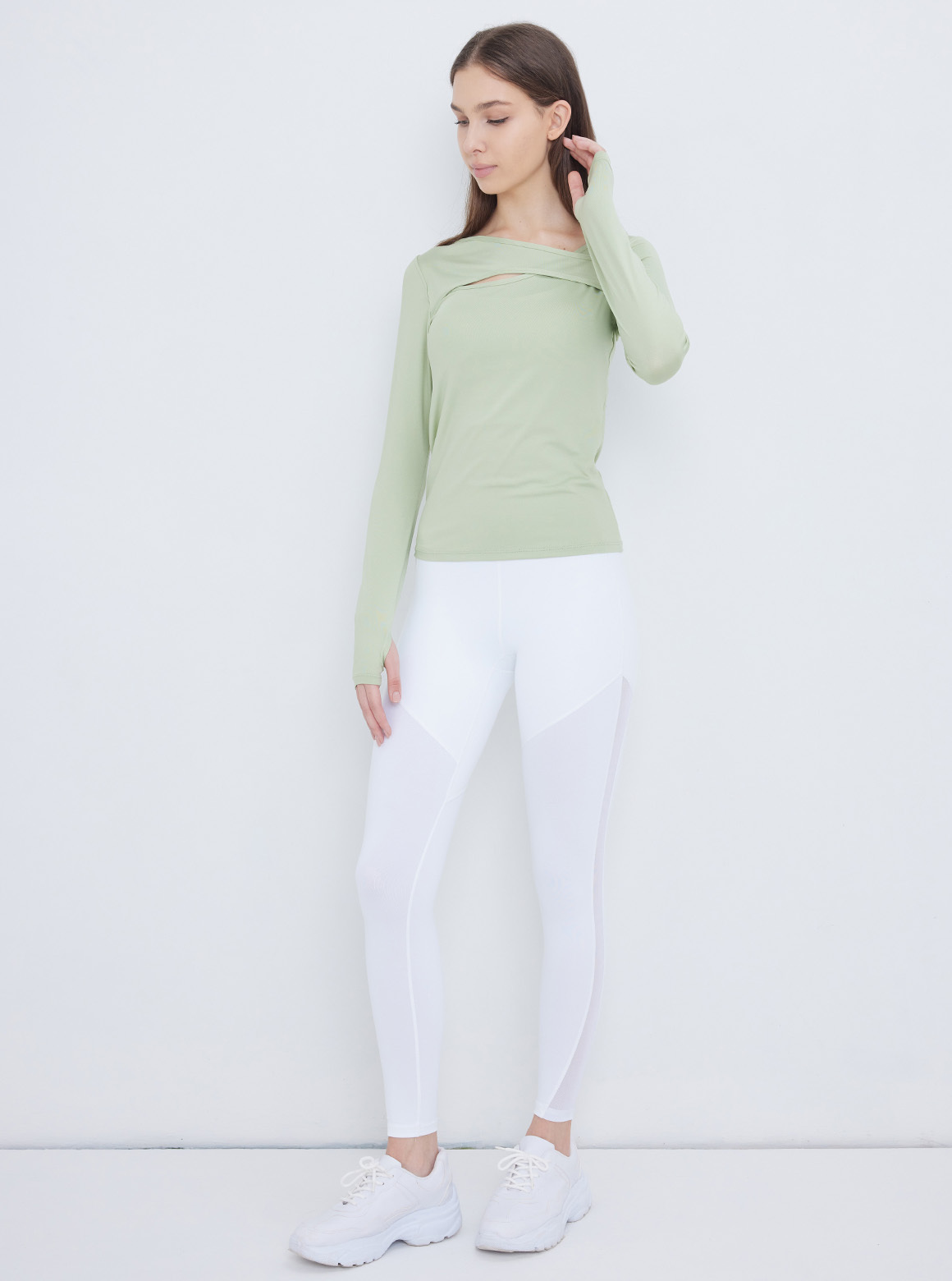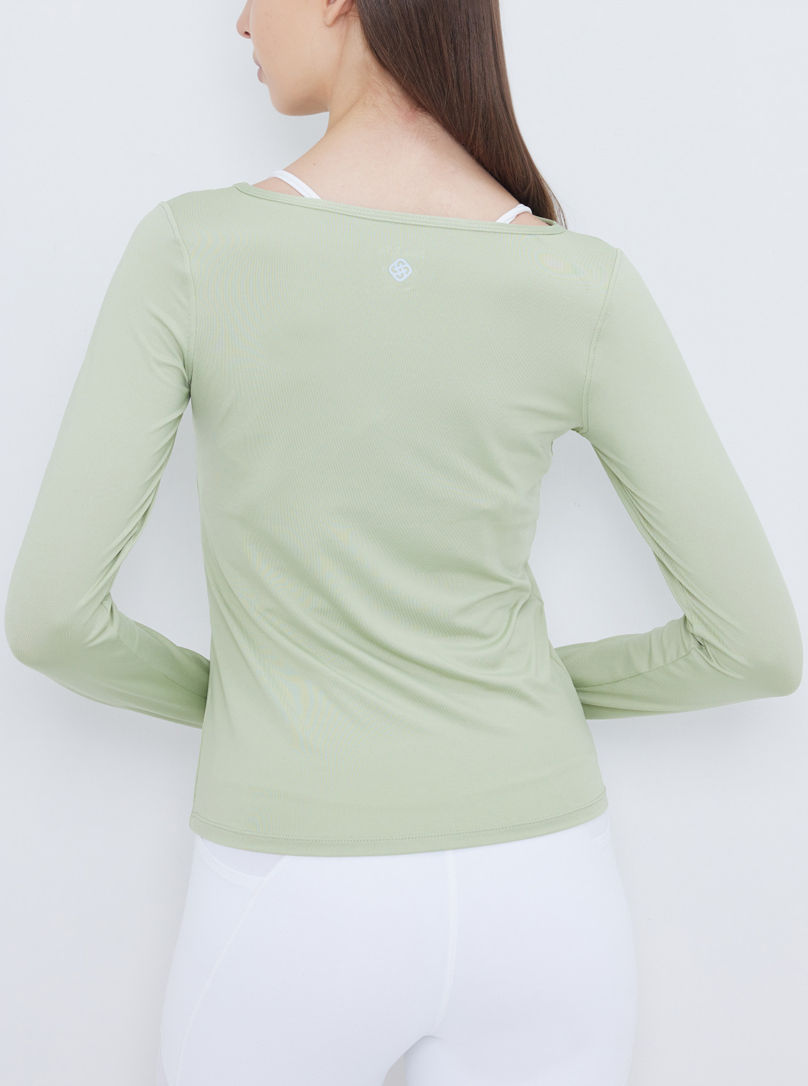 秋冬設計款霧光滑順美肩裁線上衣,包覆零距離肌膚細緻布面,觸感柔順細緻,前胸不規則設計將鎖骨及頸部線條完美呈現,時髦設計穿搭。袖口車袖洞設計,讓練習時手肘布料更加服貼無阻礙,提升練習專業度,其厚度適中可沿用春夏防曬穿搭不悶熱。