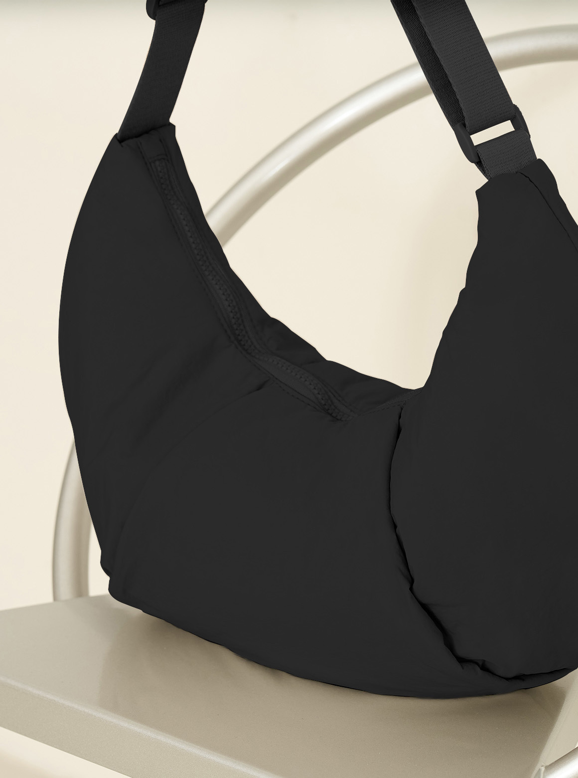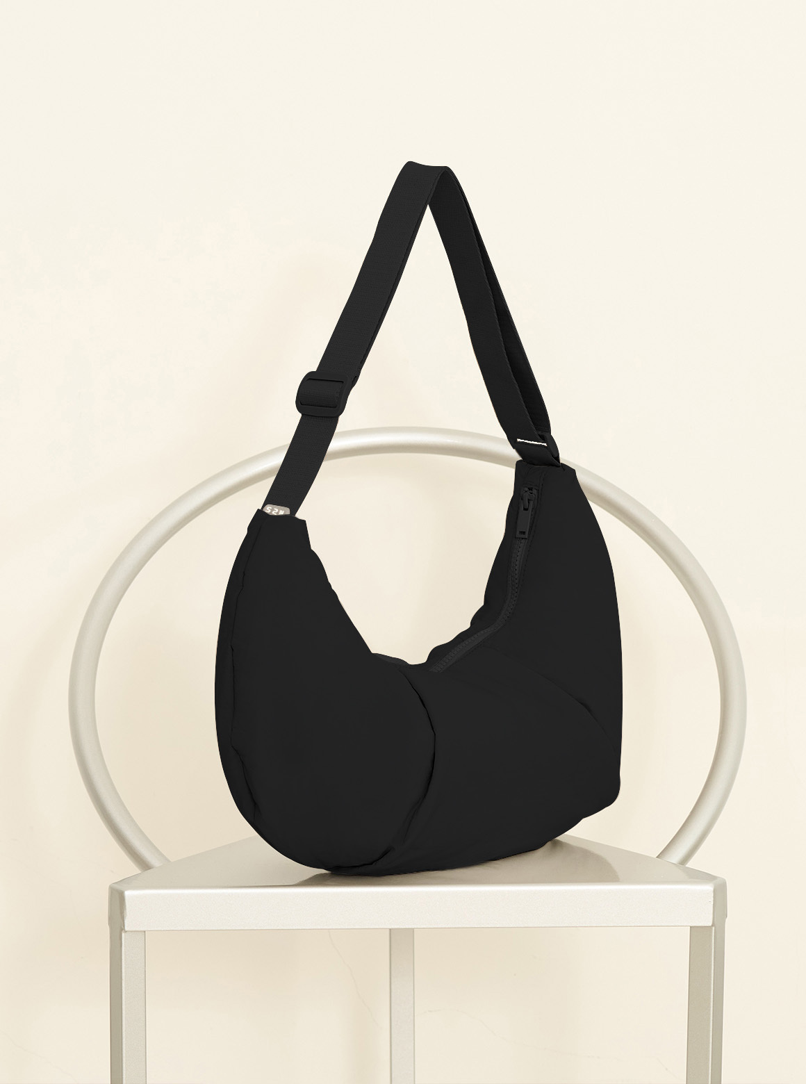 【設計】獨特的牛角形輪廓和底部立體打褶造型,背起時展現自然垂墜弧形,細緻背帶可依照身形調整長度或者側背