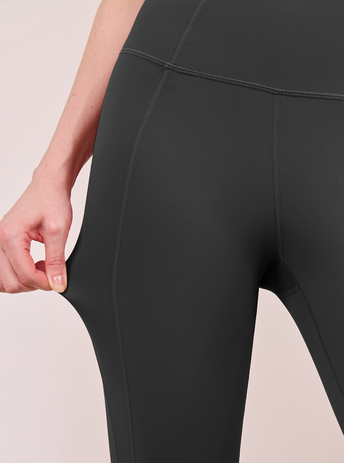 層次堆疊孔洞加壓鎖布工藝,打造360度收腹環塑效果。經由多次測試選用最適合運動兼具穩定及彈力的黑科技布料,高度緊緻包覆同時仍保有高彈性伸縮回彈性,讓穿脫無負擔,達到運動練習時止滑防捲提升的穩定感。