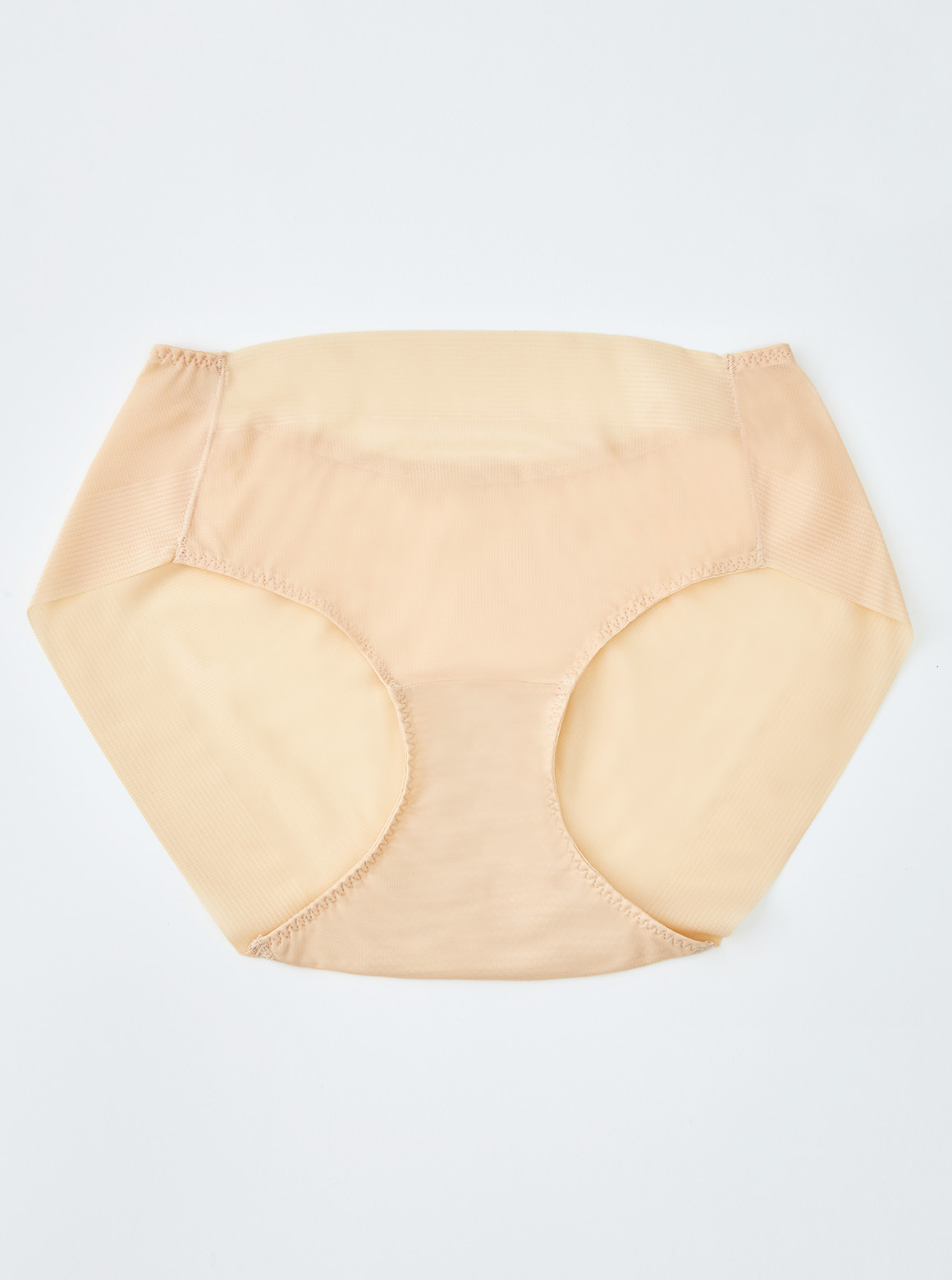 S2N開發設計臺製外銷高規NUDE UNDERWEAR中腰無痕內褲,3D立體剪裁版型,採用鎖邊無痕技術加強臀部支撐包覆感,避免夾臀捲邊等困擾;布料使用網紗清透舒爽感,另獨家使用高科技銀離子抗菌布底有效抑制腸桿菌、金黃色葡萄球菌等,讓私密處清爽舒適。布邊褲採千鳥車縫工藝,讓布料更加密合牢固。