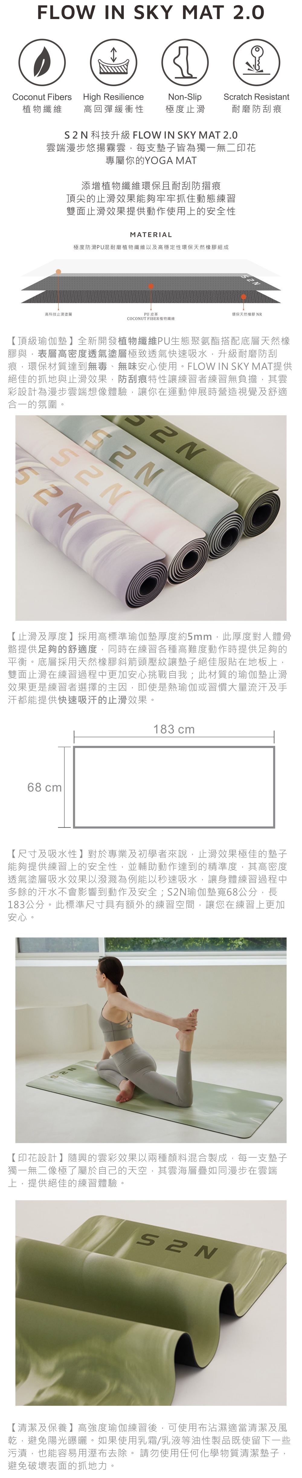 S2N FLOW IN SKY 2.0 雲端漫步瑜珈墊 5mm / 183x68cm_Apple Green P050