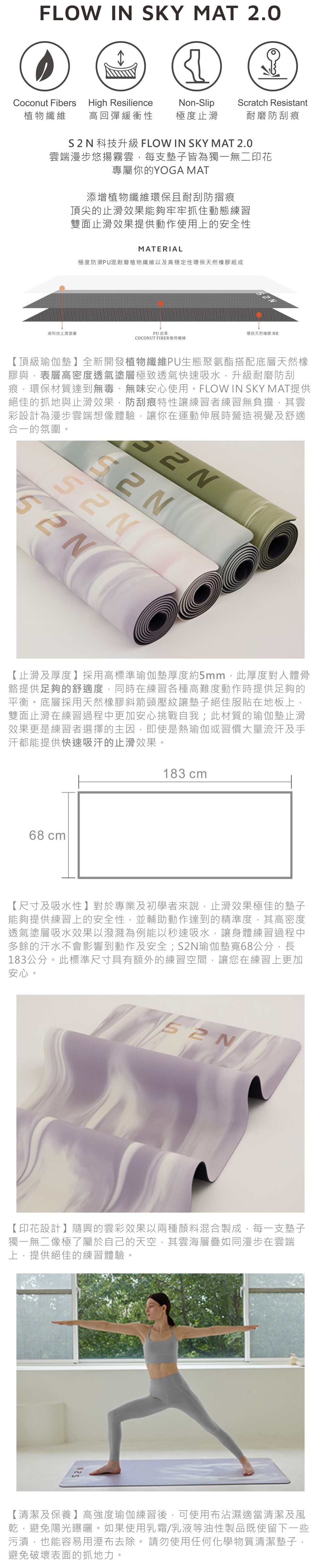 S2N FLOW IN SKY 2.0 雲端漫步瑜珈墊 5mm / 183x68cm_Lilac P050
