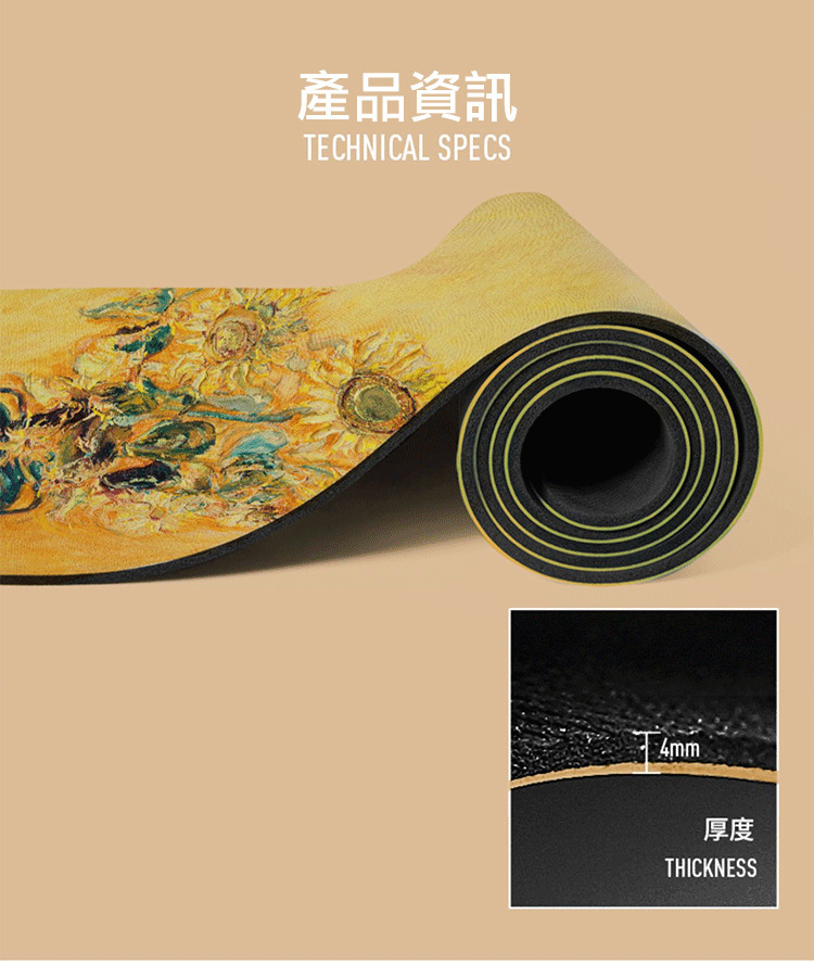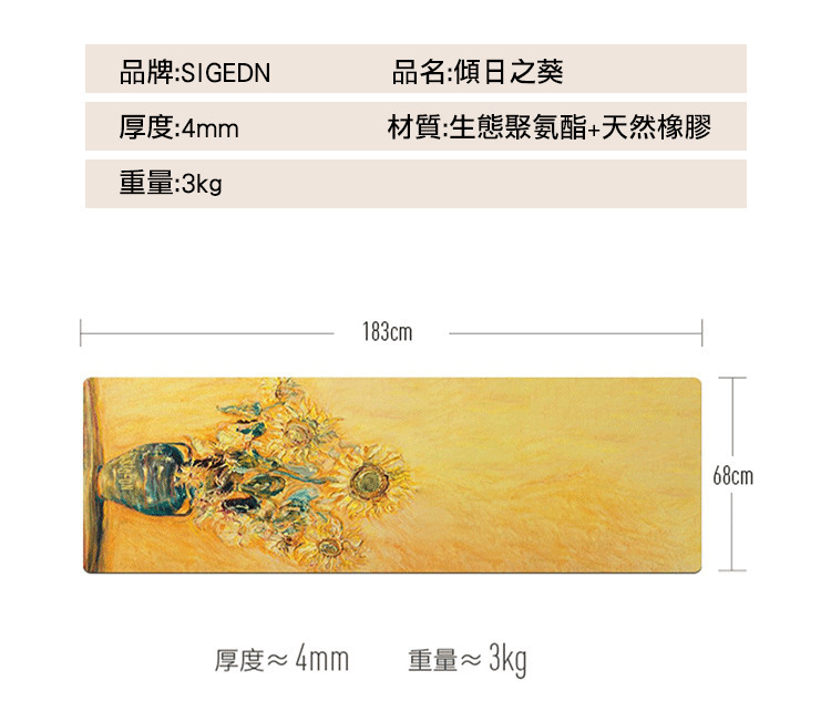 SIGEDN 乾濕防滑PU瑜珈墊天然橡膠瑜珈墊 4mm / 183x68cm SUNFLOWER 仙女墊 花神墊