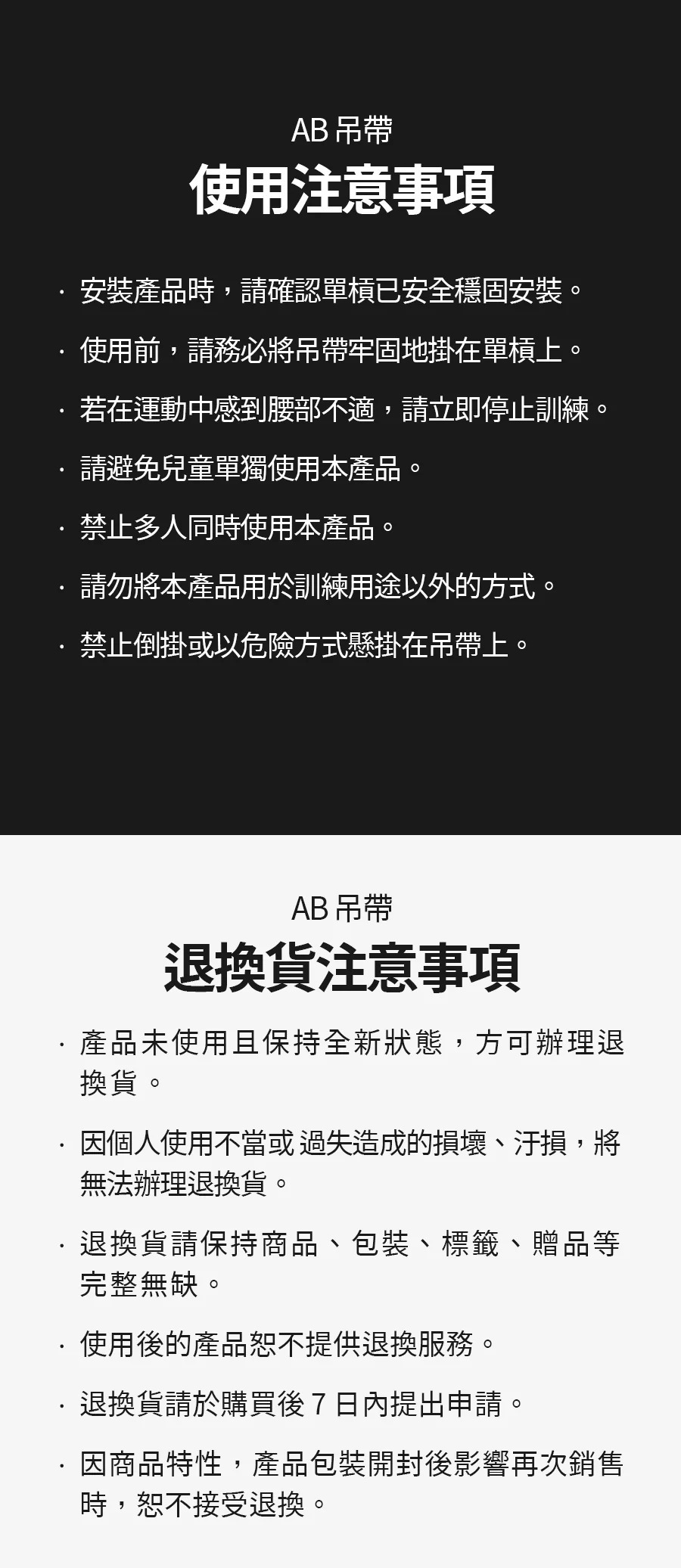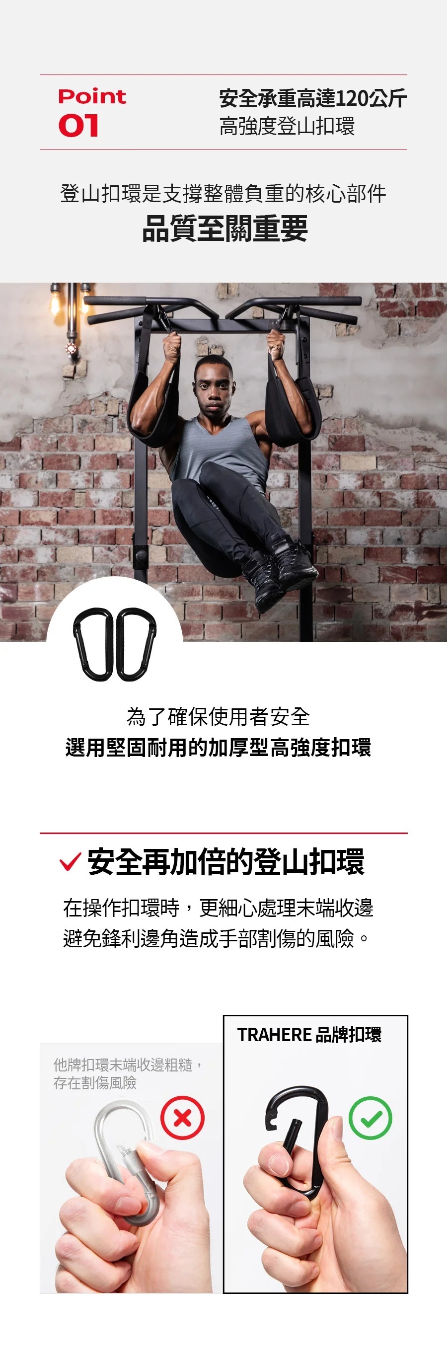 ※安裝產品時,請確認單槓已安全穩固安裝,使用前,請務必將吊帶牢固地掛在單槓上。