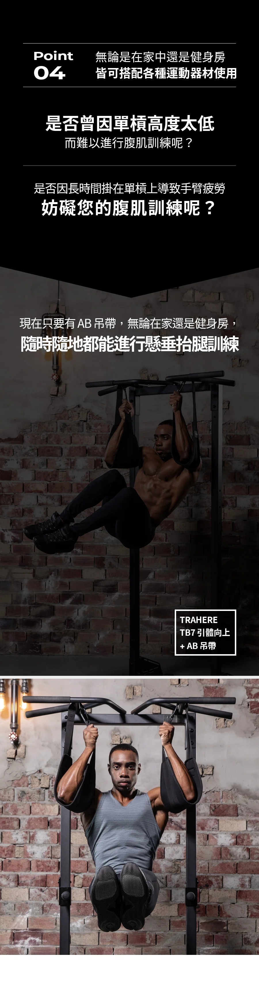 推薦安裝於Trahere 超寬門框式引體向上單槓 TB7