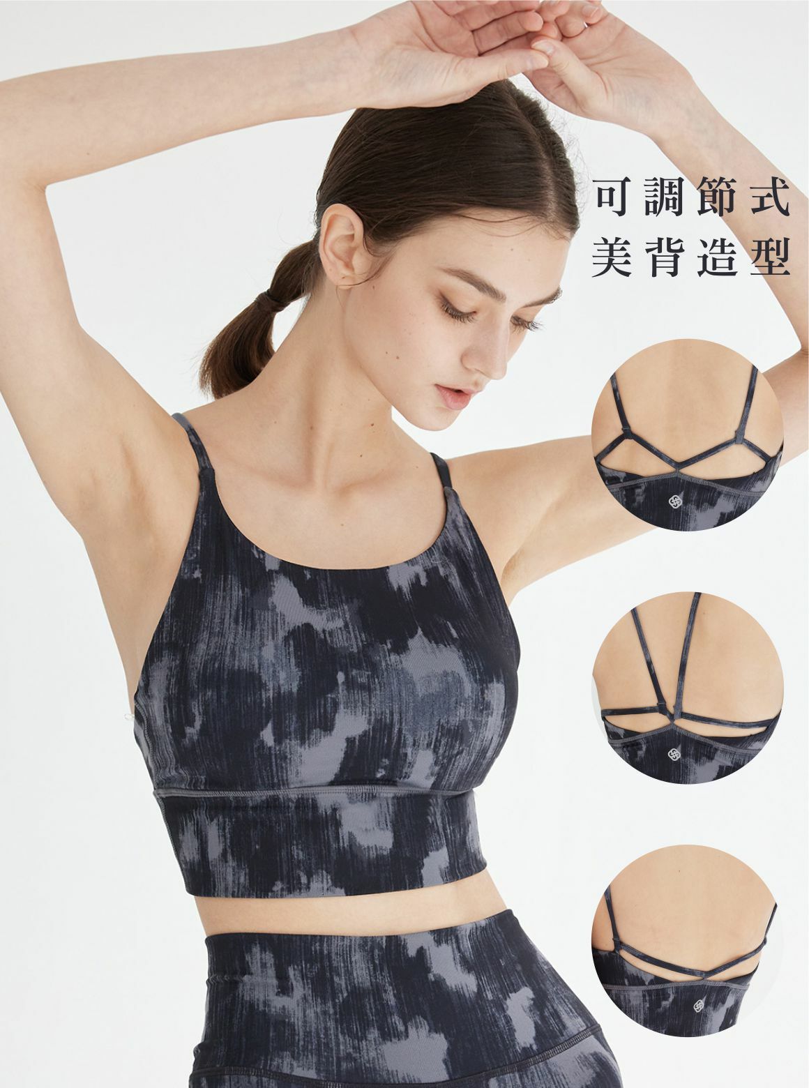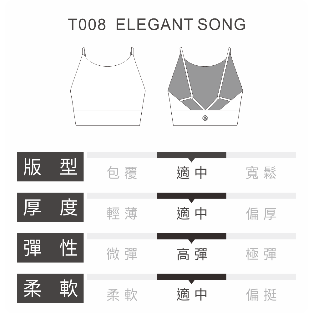 S2N設計款ELEGANT SONG雅緻詩頌短上衣,高領弧線展露女性鎖骨優雅之姿,搭配細緻可調節造型變換簡雅美背設計,可隨心變換造型調節至最貼合人體背脊至舒適位置,克服斜肩等身形限制,展現三種不同造型風貌(肩帶往左右可微調鬆,往中調緊),同時兼具舒適時尚美感。