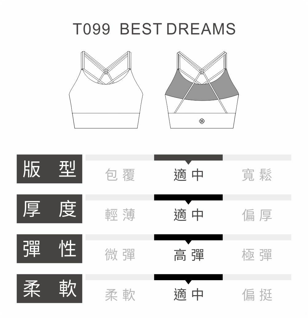 S2N設計款BEST DREAMS美妙夢曲短上衣,X無負擔後背設計降低伸展不適感,透過精緻繩結設計將美背嶄露無遺。胸前細緻設計加強美胸效果,添加穿上的自信美,思慮的設計不僅提供基本機能應有的舒適感,更能讓運動服飾成為妳外出穿搭的選擇。S2N將刺痛不適洗滌識別標改以高透氣質感印標,讓零距離的肌膚絲毫感受不到存在,為特別的妳寫下獨特的設計。